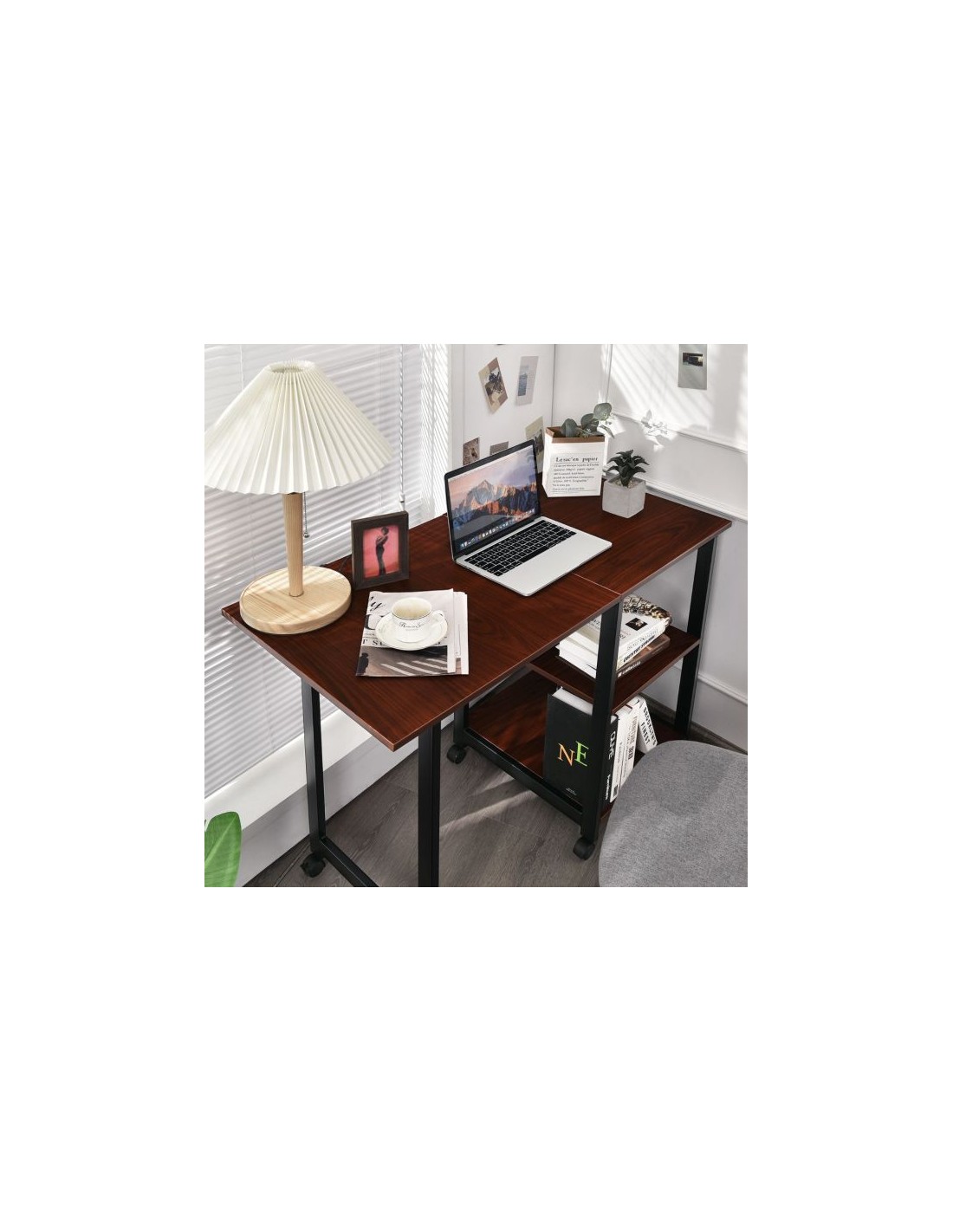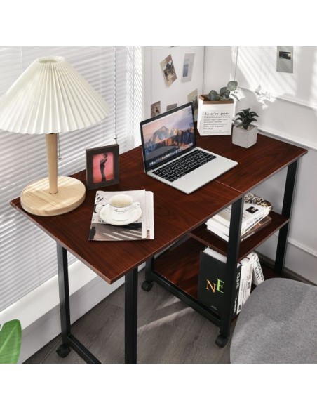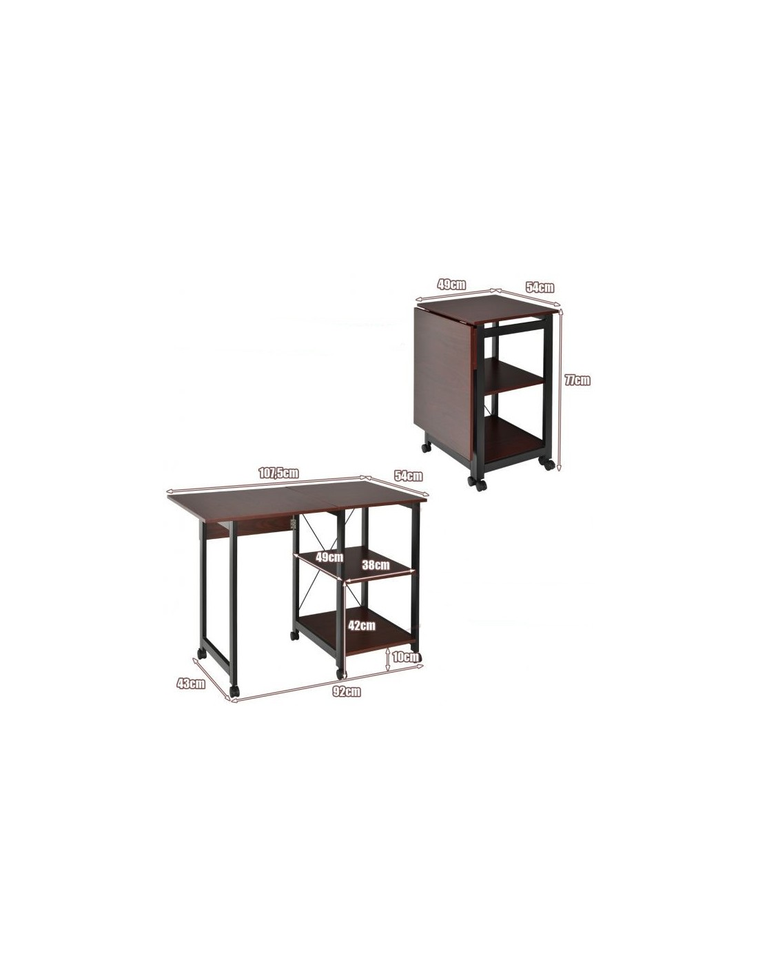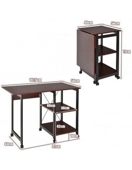 Skrivebord i metal og mdf 49 - 107,5 cm - Sort/Brun