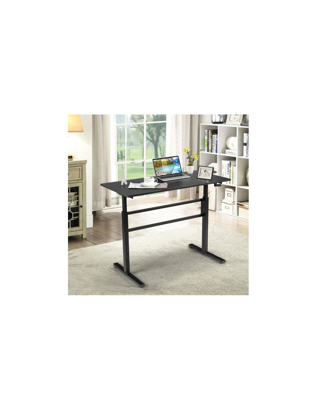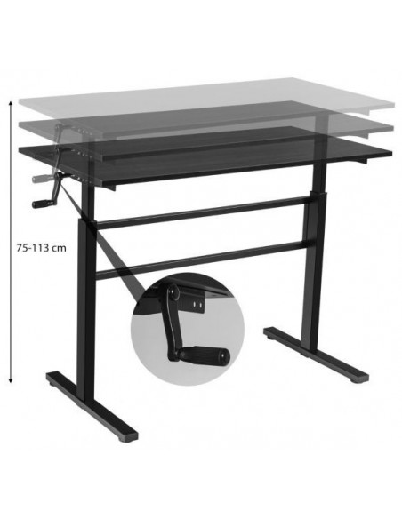Højdejusterbart computerbord i stål og møbelplade B120 cm - Sort