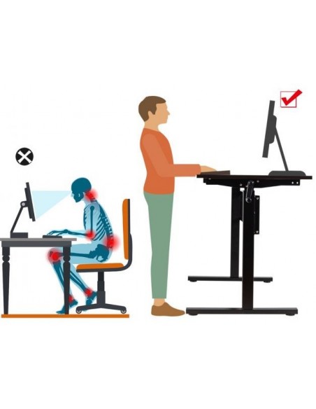 Højdejusterbart computebord udført i et design af sortlakeret stål og møbelplade. Bordet måler 75 - 113 cm i højden og 120 x 60 cm i bredde og dybde.