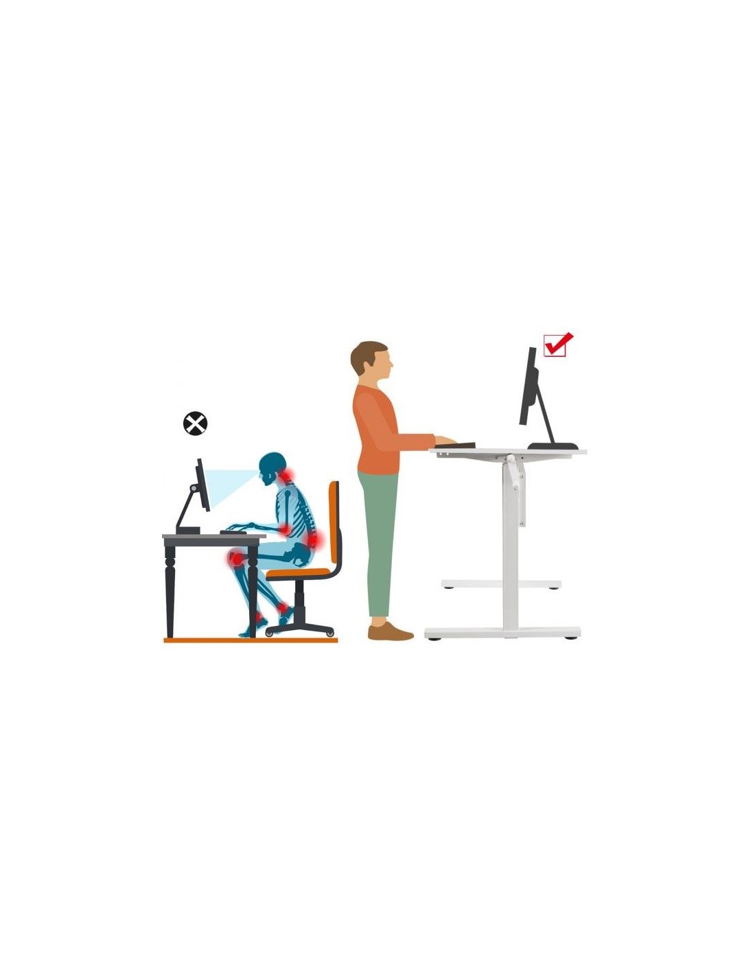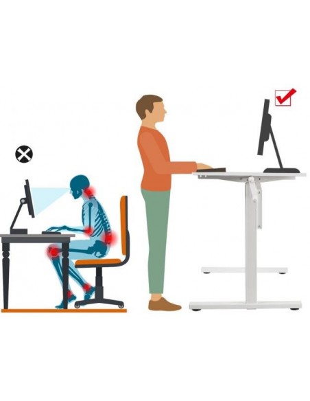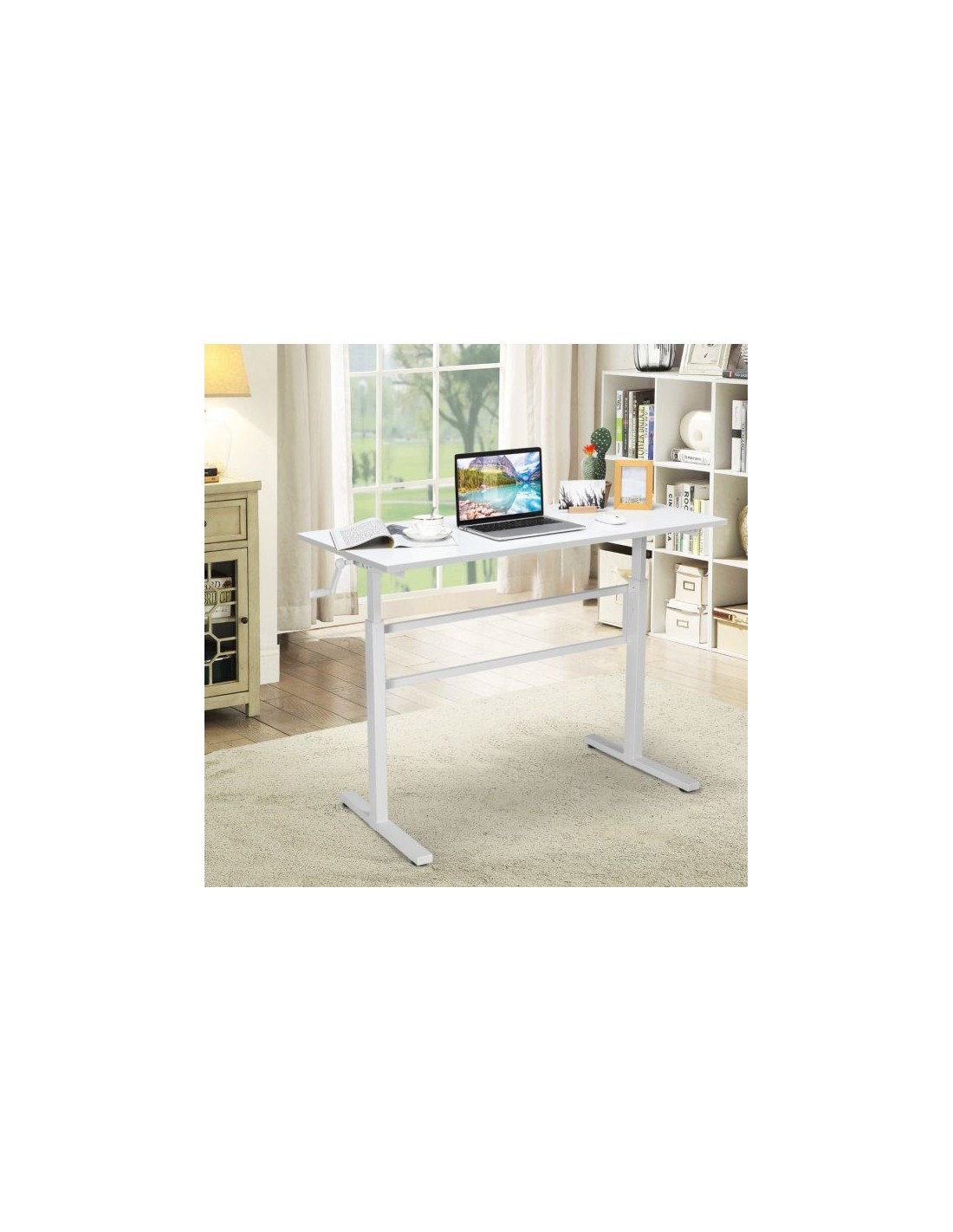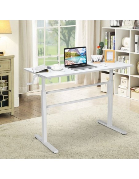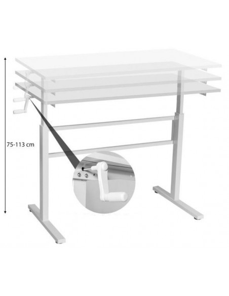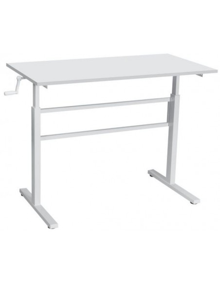Højdejusterbart computerbord i stål og møbelplade B120 cm - Hvid