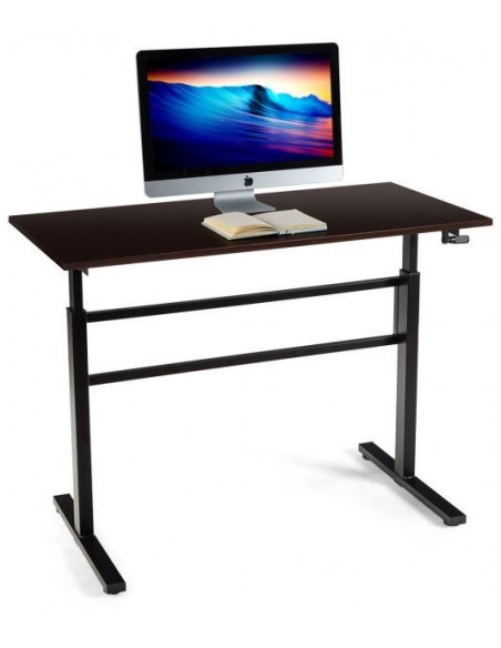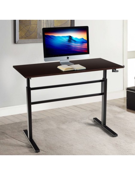 Højdejusterbart computerbord i stål og møbelplade B120 cm - Sort/Brun