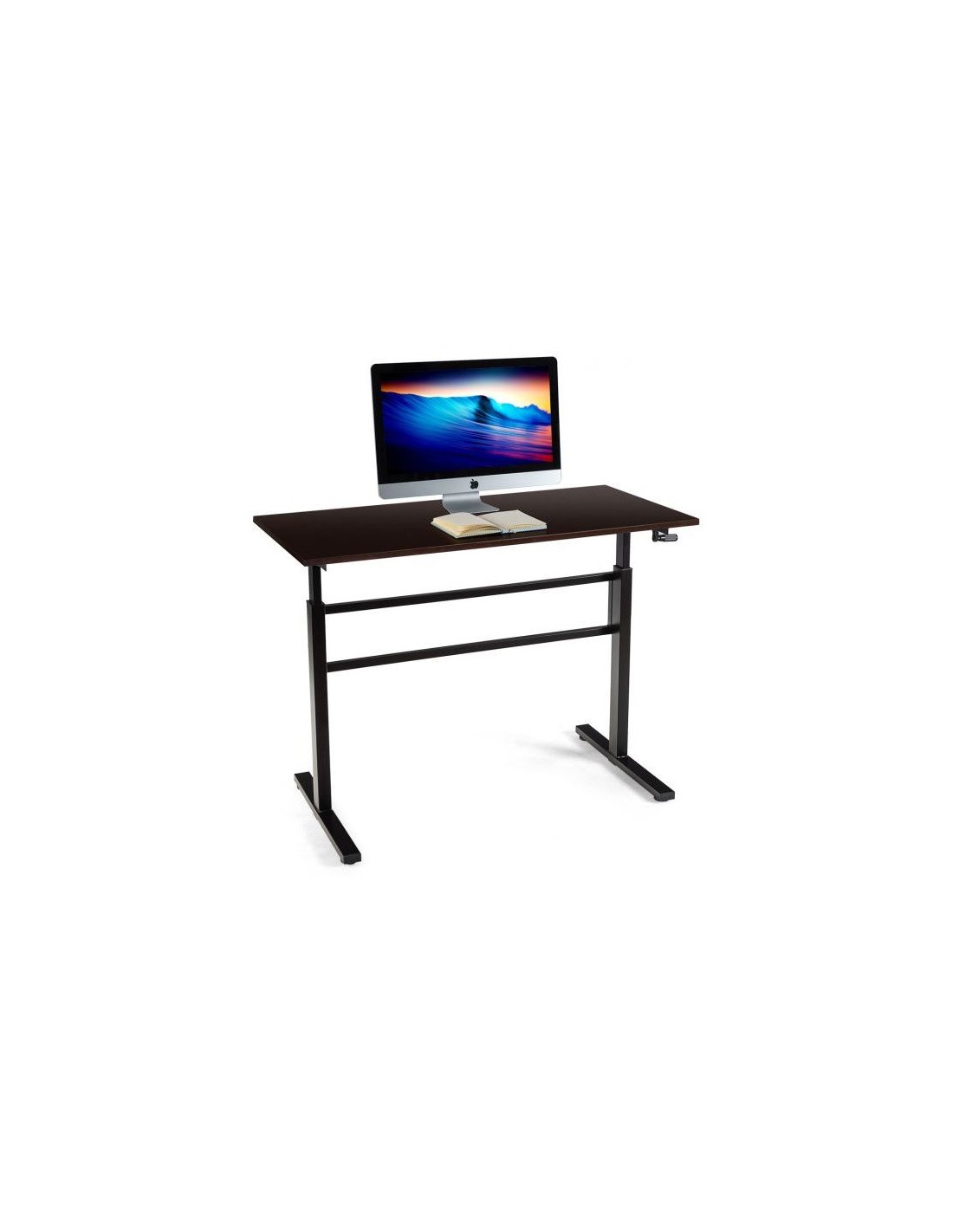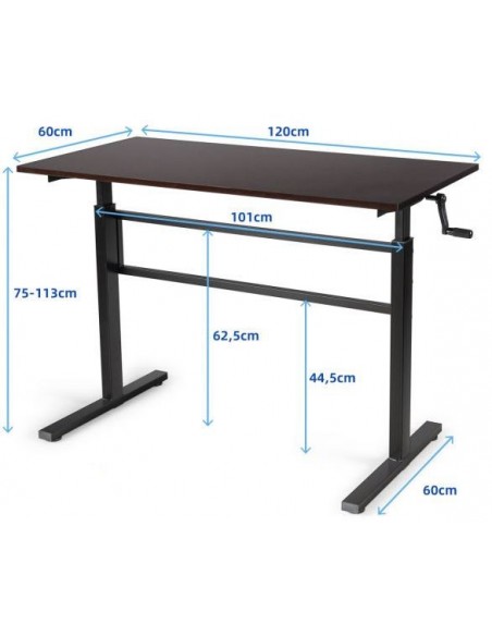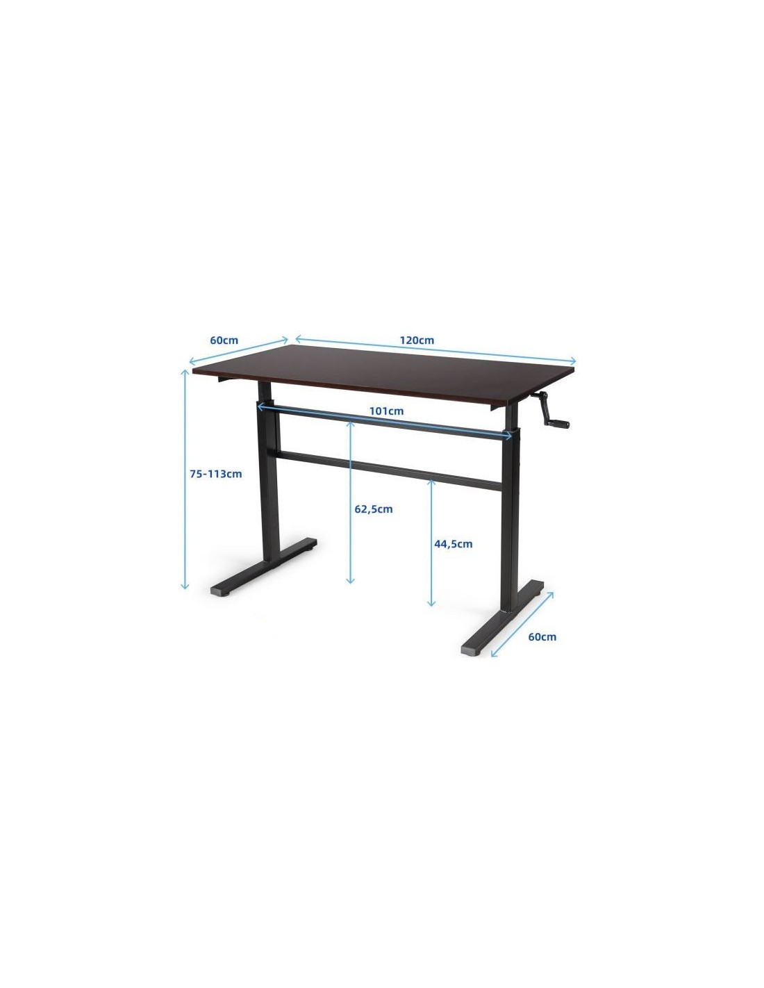 Højdejusterbart computebord udført i et design af sortlakeret stål og brun møbelplade. Bordet måler 75 - 113 cm i højden og 120 x 60 cm i bredde og dybde.