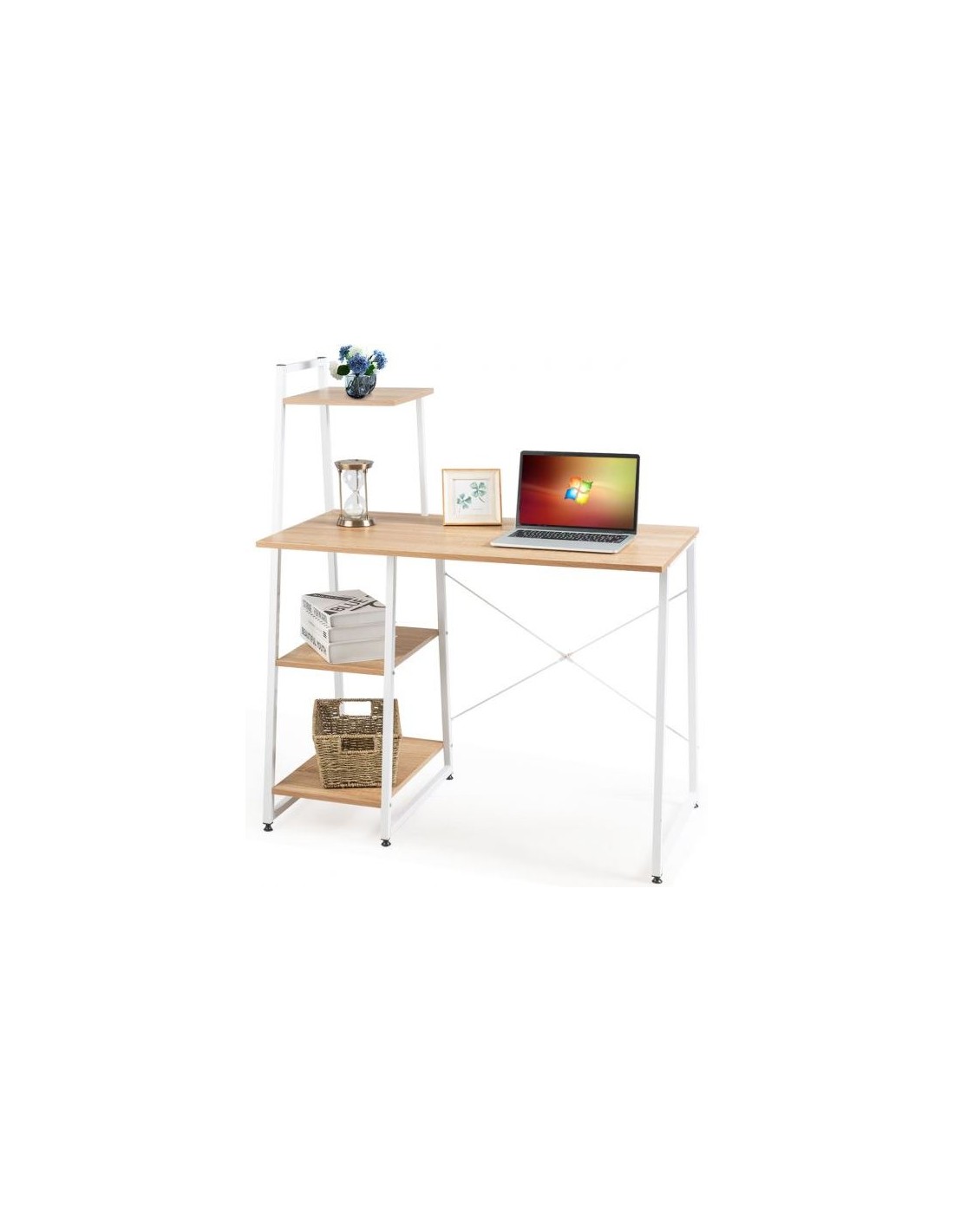 Computerbord i metal og møbelplade H75,5 - 118 x B98 cm - Hvid/Natur