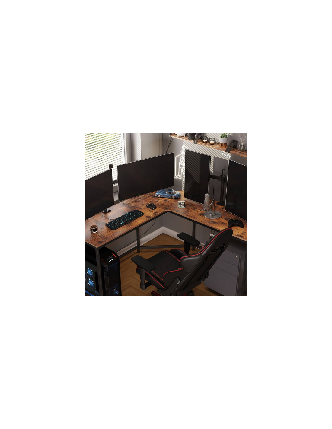 Hjørneskrivebord i metal og møbelplade 149 x 149 cm - Sort/Brun