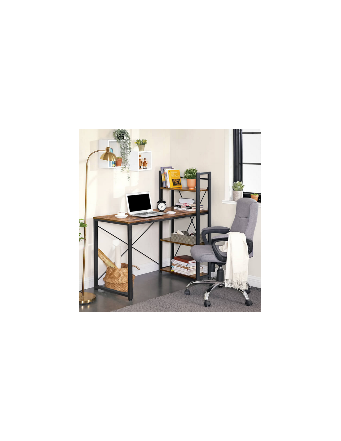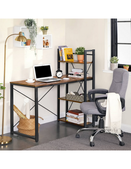 Skrivebord i metal og møbelplade H76 - 120 x B120 x D60 cm - Sort/Brun