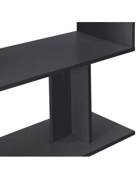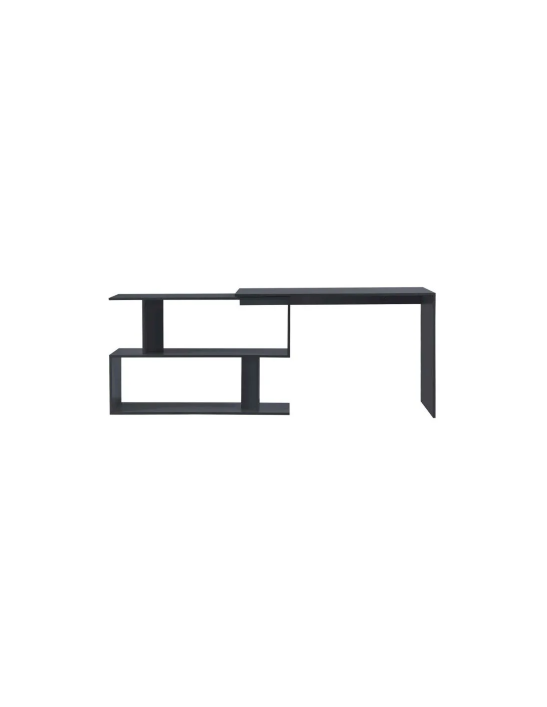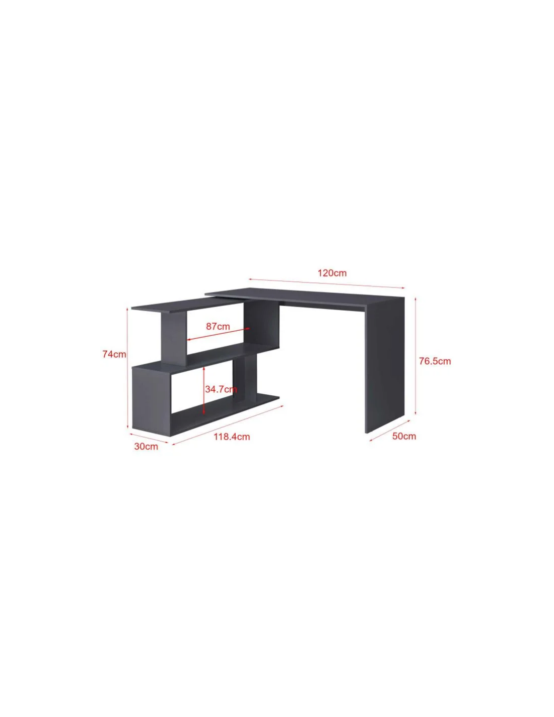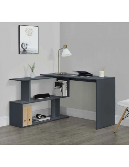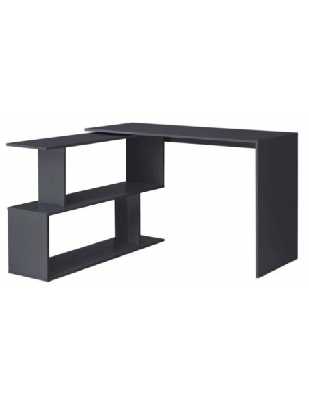 Hjørneskrivebord udført i et design af mat mørkegrå møbelplade. Bordet måler 76,5 cm i højden og 120 x 118,4 cm i bredde og dybde. Bordplade dybden er 50 cm.