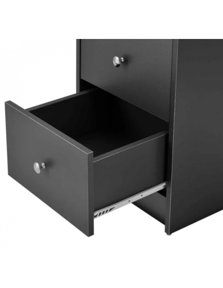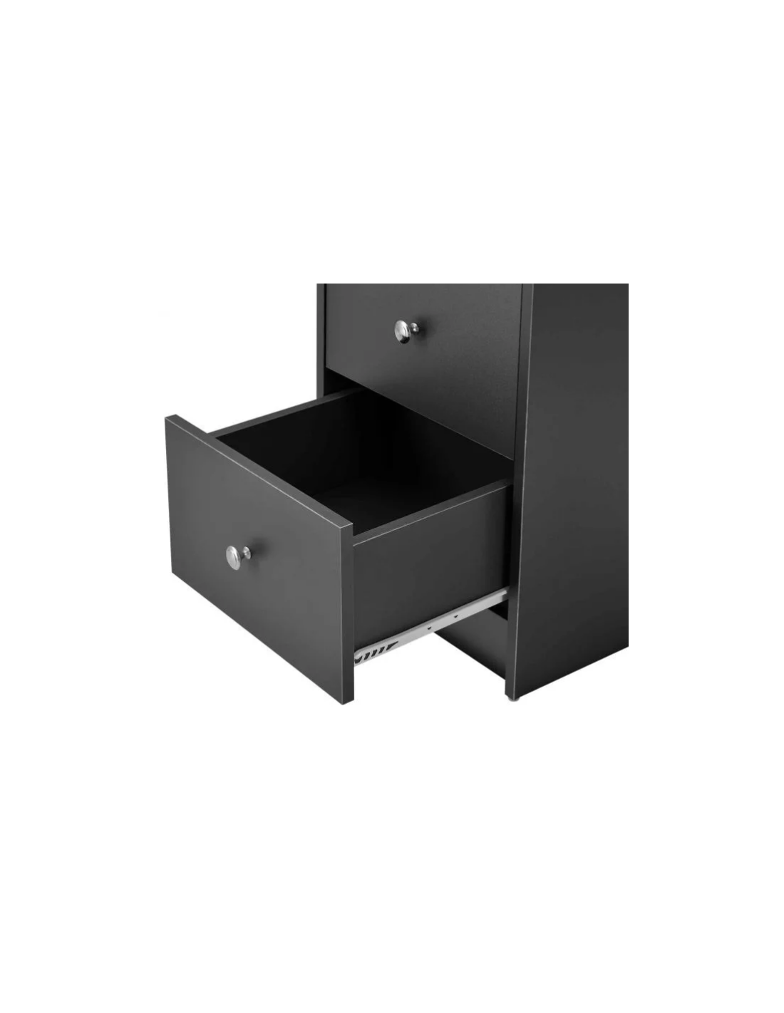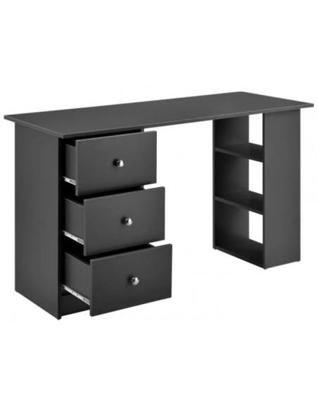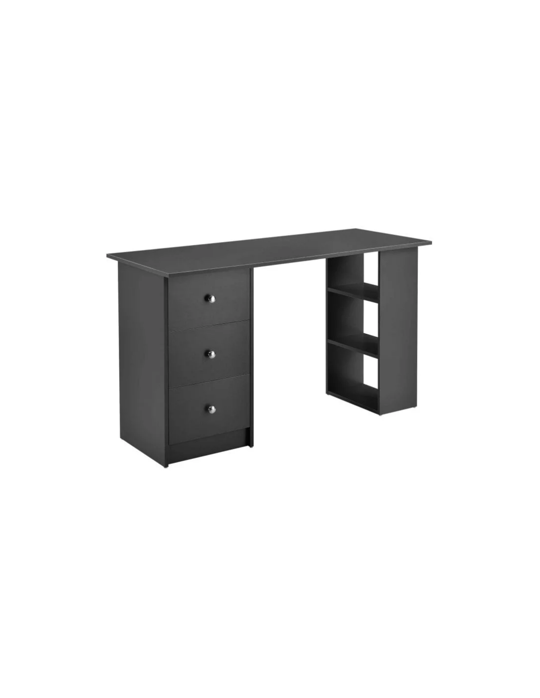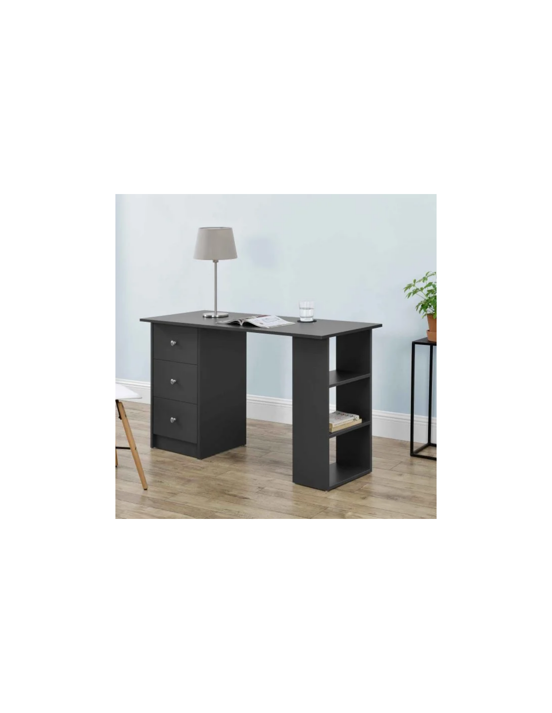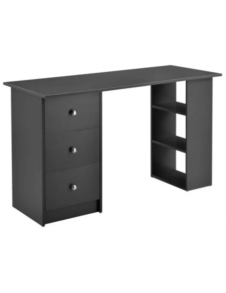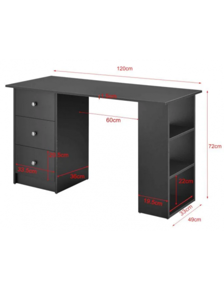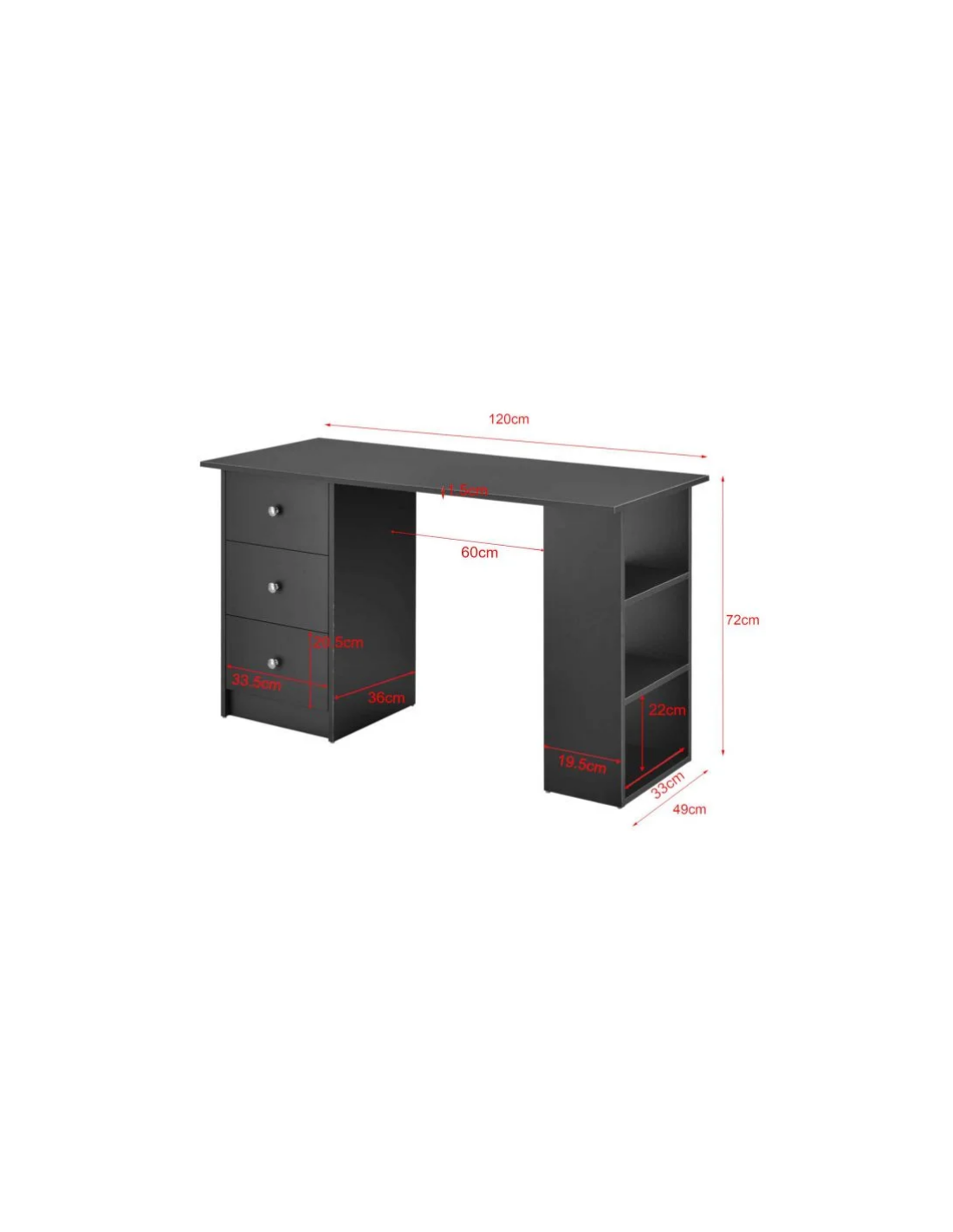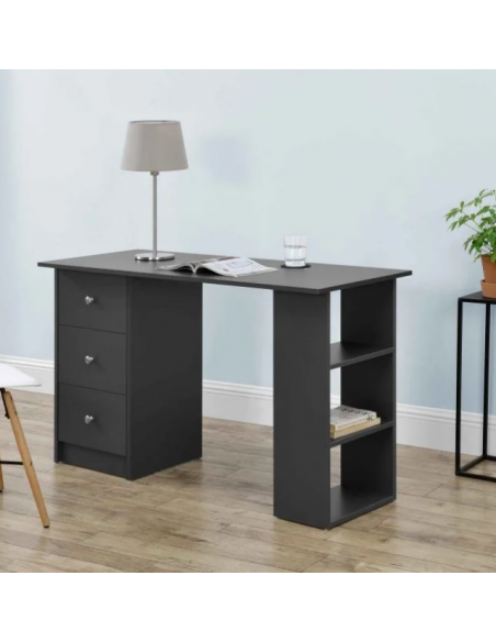 Skrivebord udført i et design af mørkegrå møbelplade. Skrivebordet måler 72 cm i højden og 120 x 49 cm i bredde og dybde.