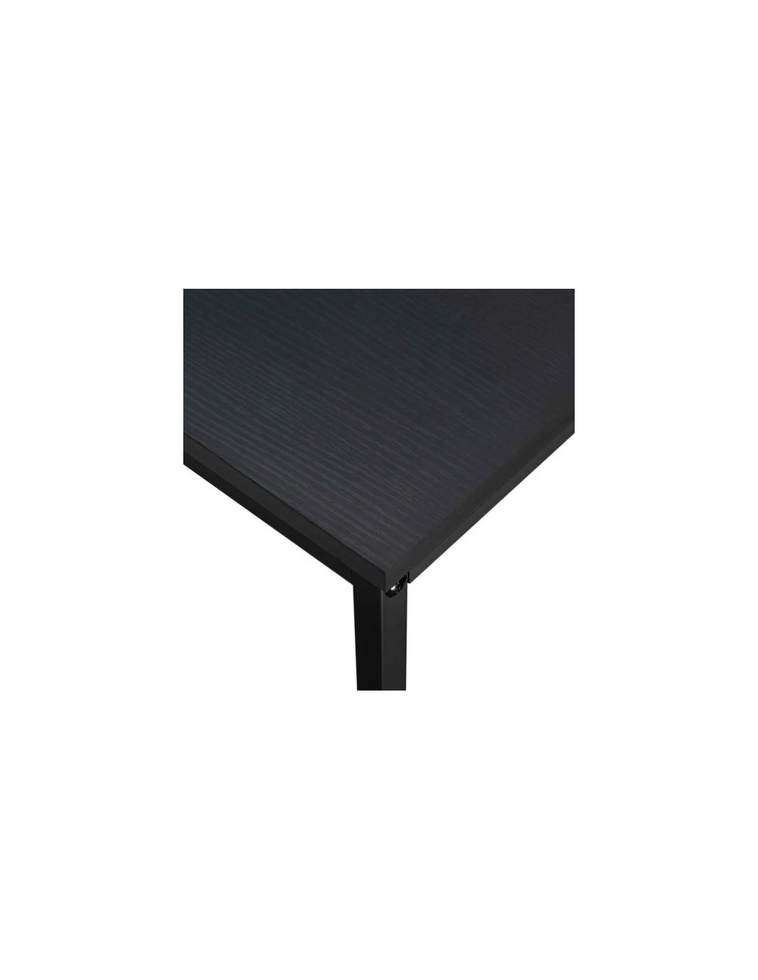 Skrivebord udført i et design af sortlakeret metal og møbelplade. Skrivebordet måler 72 cm i højden og 120 x 60 cm i bredde og dybde.
