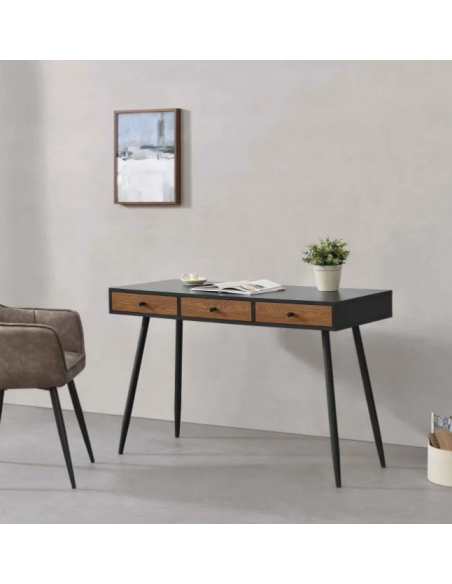 Skrivebord i metal og møbelplade 115 x 48 cm - Sort/Nød