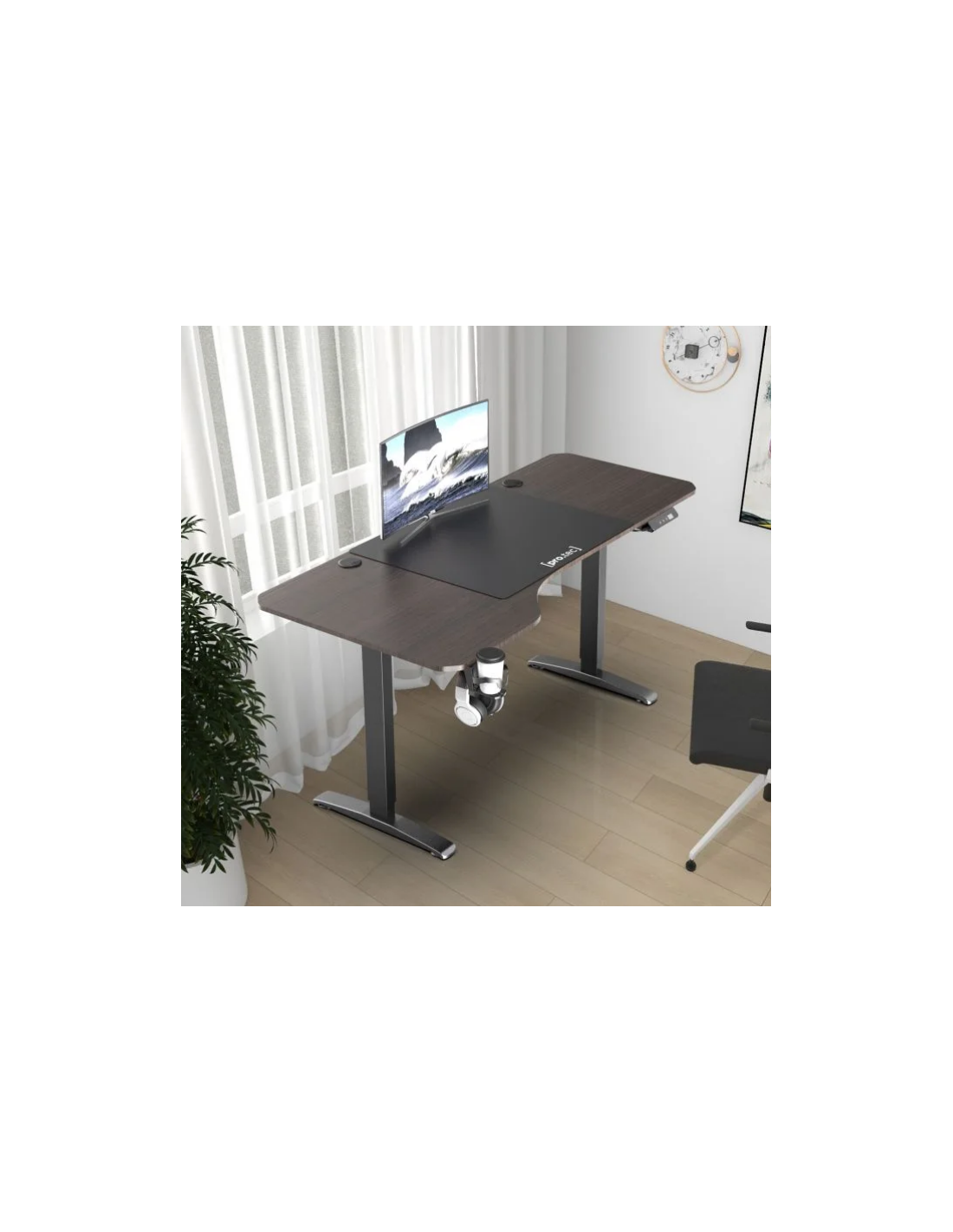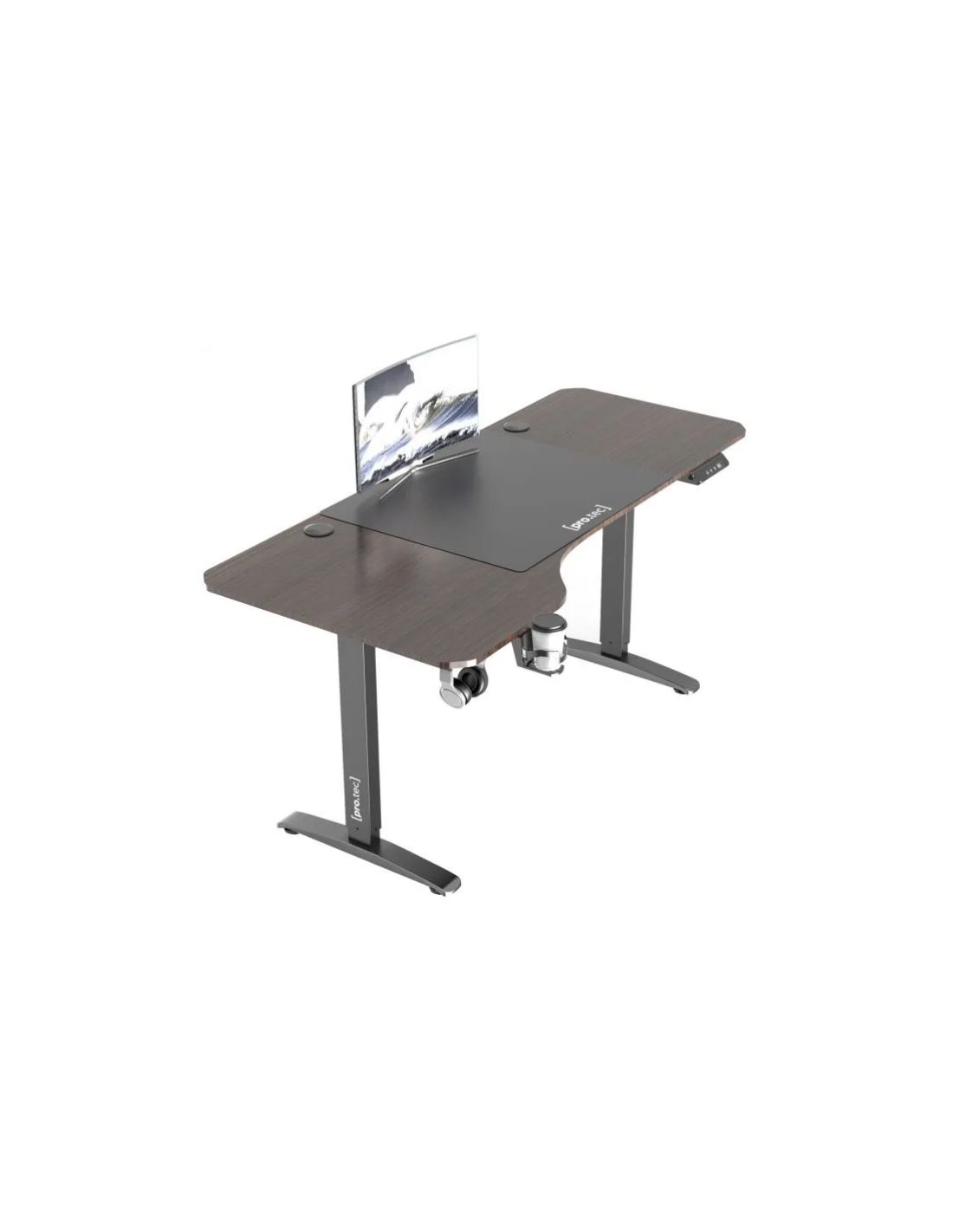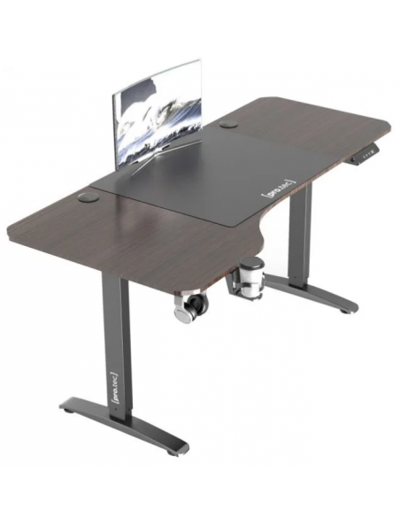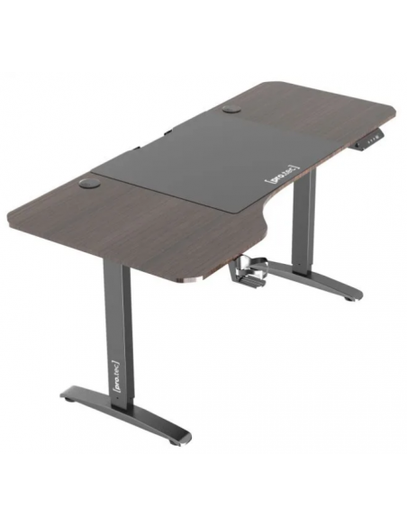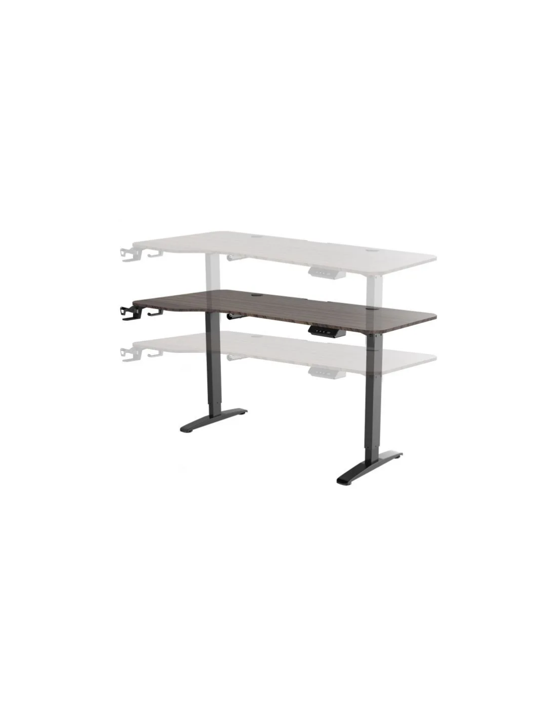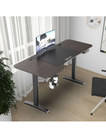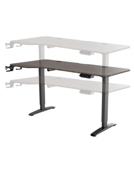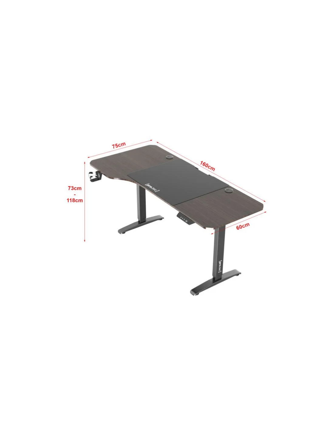 Hæve/sænke skrivebord udført i et design af aluminium og møbelplade. Skrivebordet måler 73 - 118 cm i højden og 160 x 60 - 75 cm i bredde og dybde.