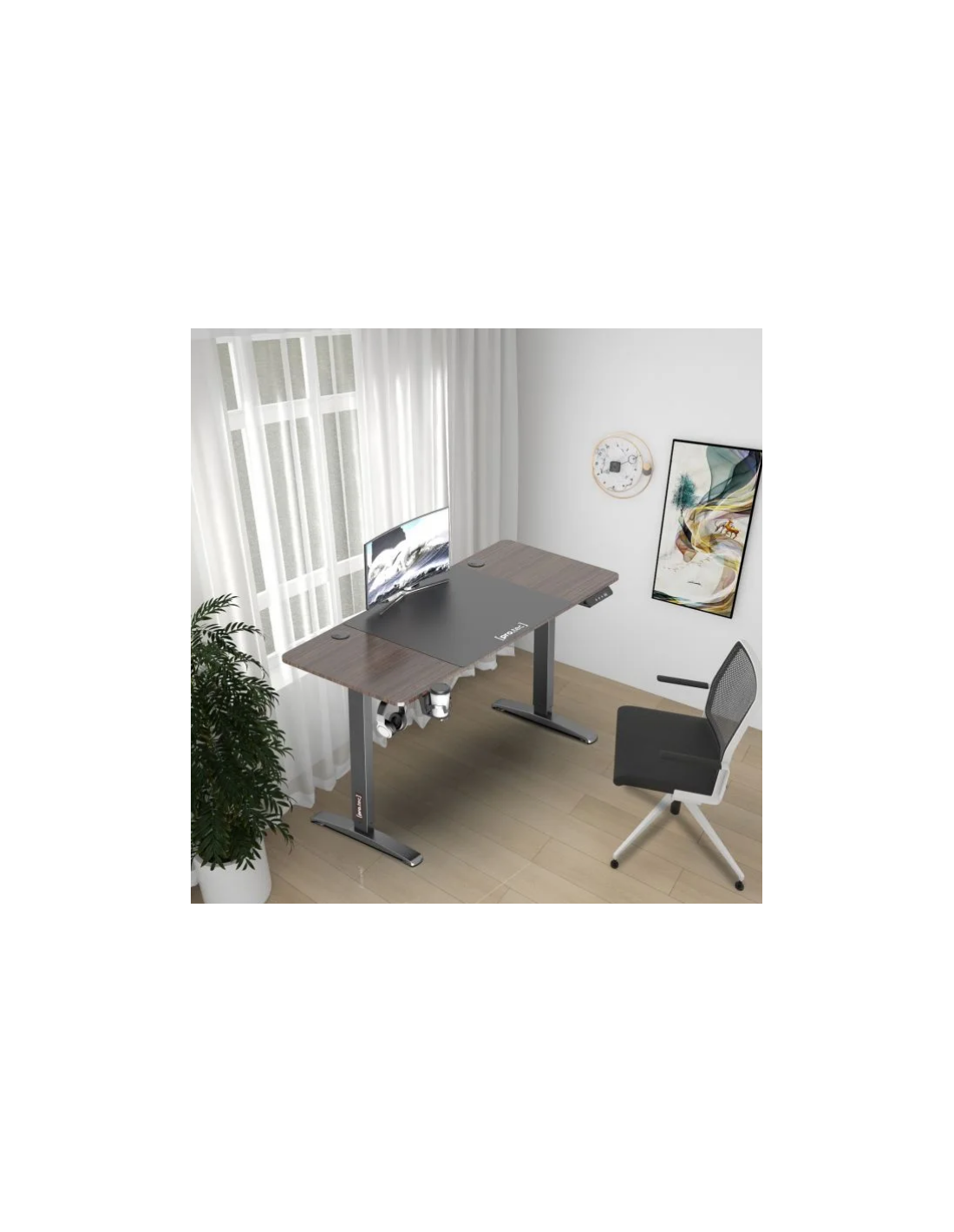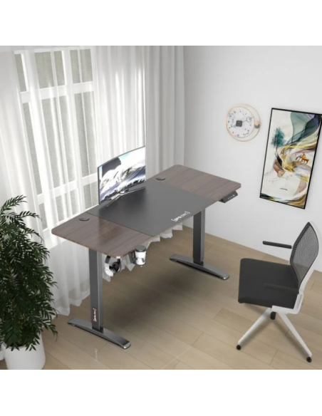 Hæve/Sænke skrivebord i aluminium og møbelplade 140 x 60 cm - Grå/Valnød