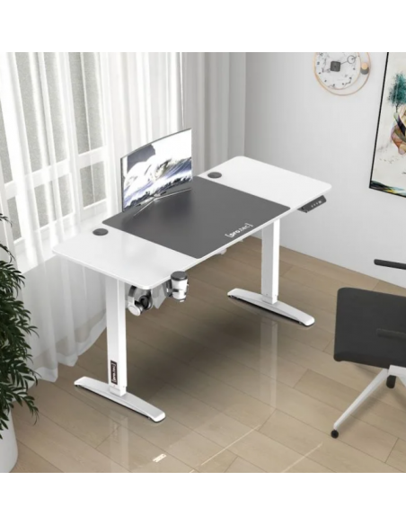 Hæve/Sænke skrivebord i aluminium og møbelplade 140 x 60 cm - Hvid