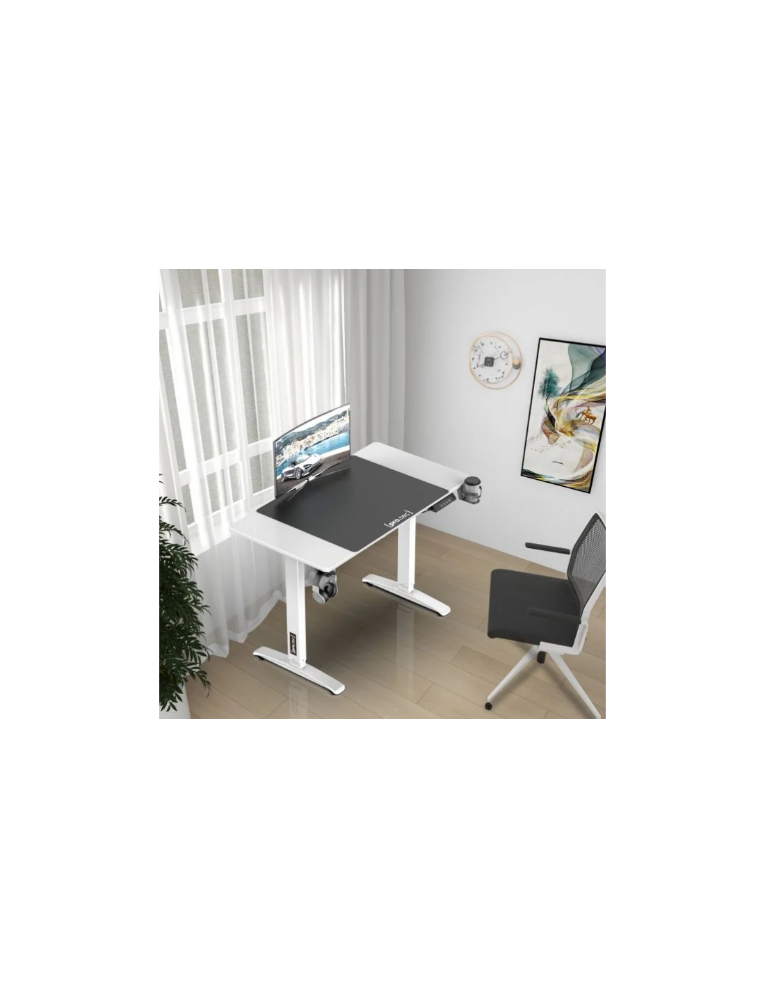 Hæve/Sænke skrivebord i aluminium og møbelplade 110 x 60 cm - Hvid