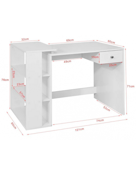 Skrivebord udført i et design af møbelplade. Skrivebordet måler 71 - 76 cm i højden og 101 x 60 cm i bredde og dybde.