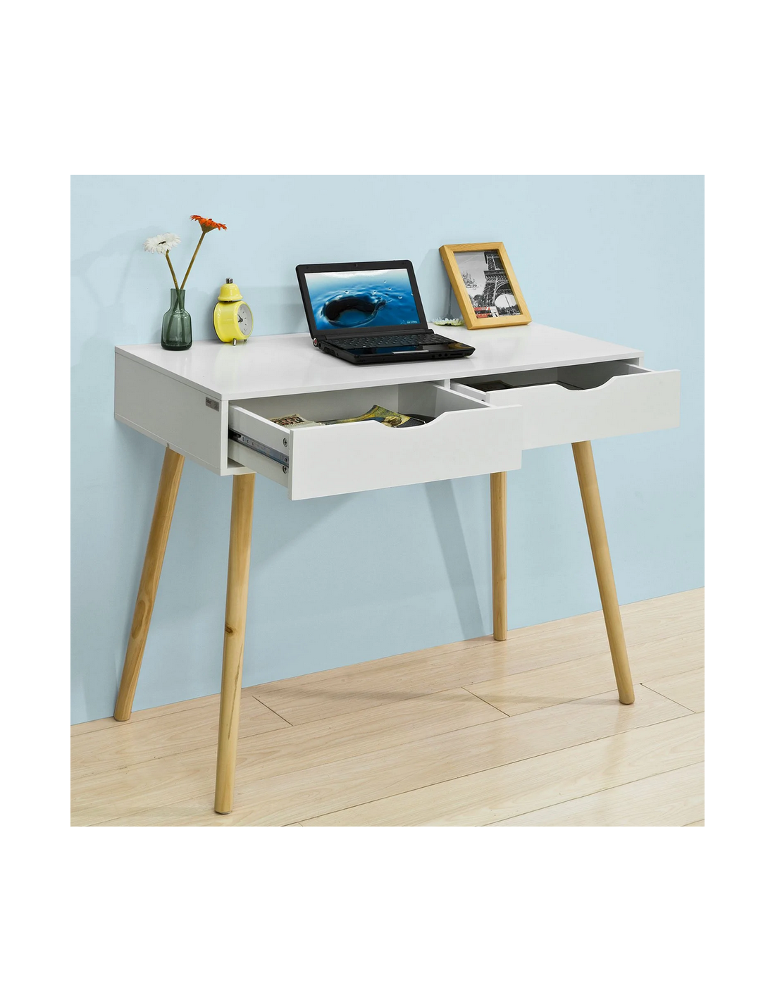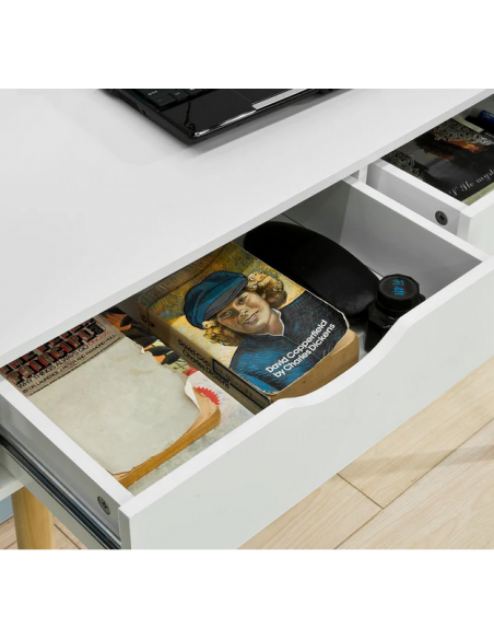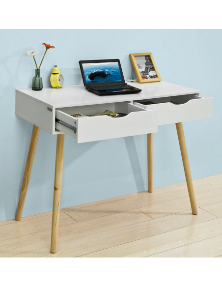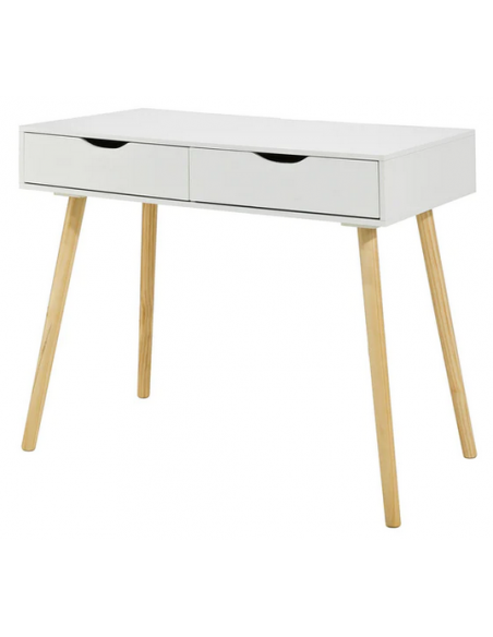 Skrivebord i træ og møbelplade H77 x B90 x D45 cm - Hvid/Natur