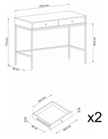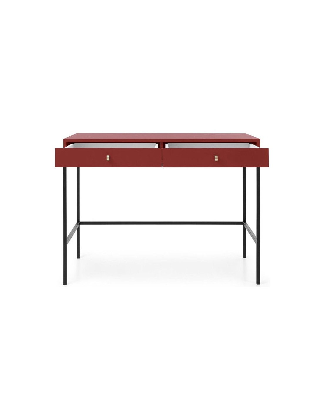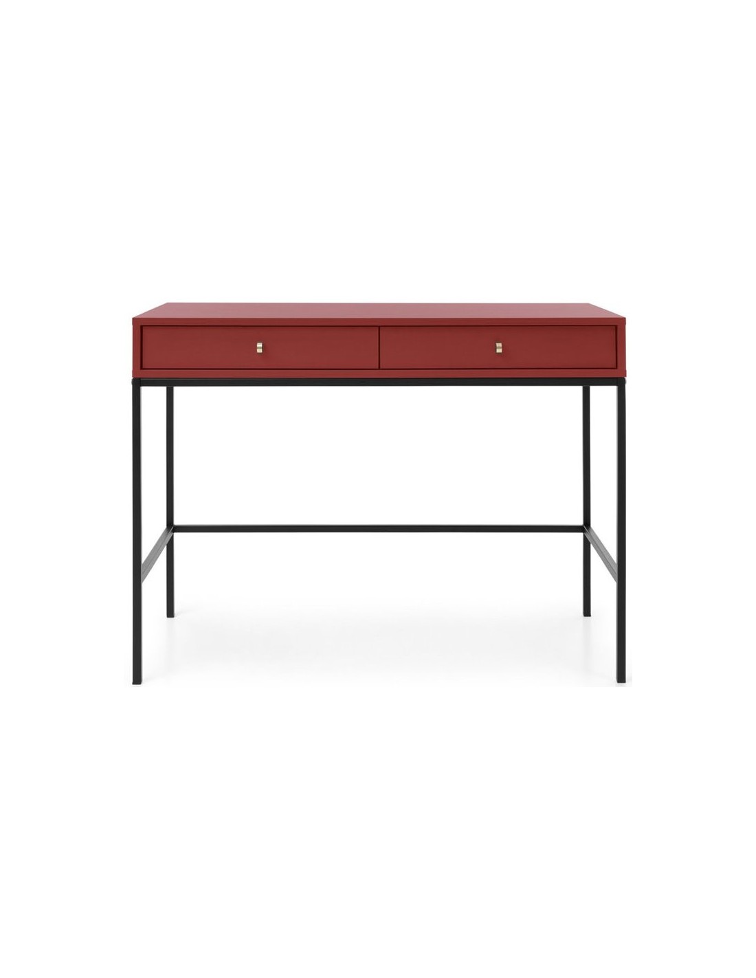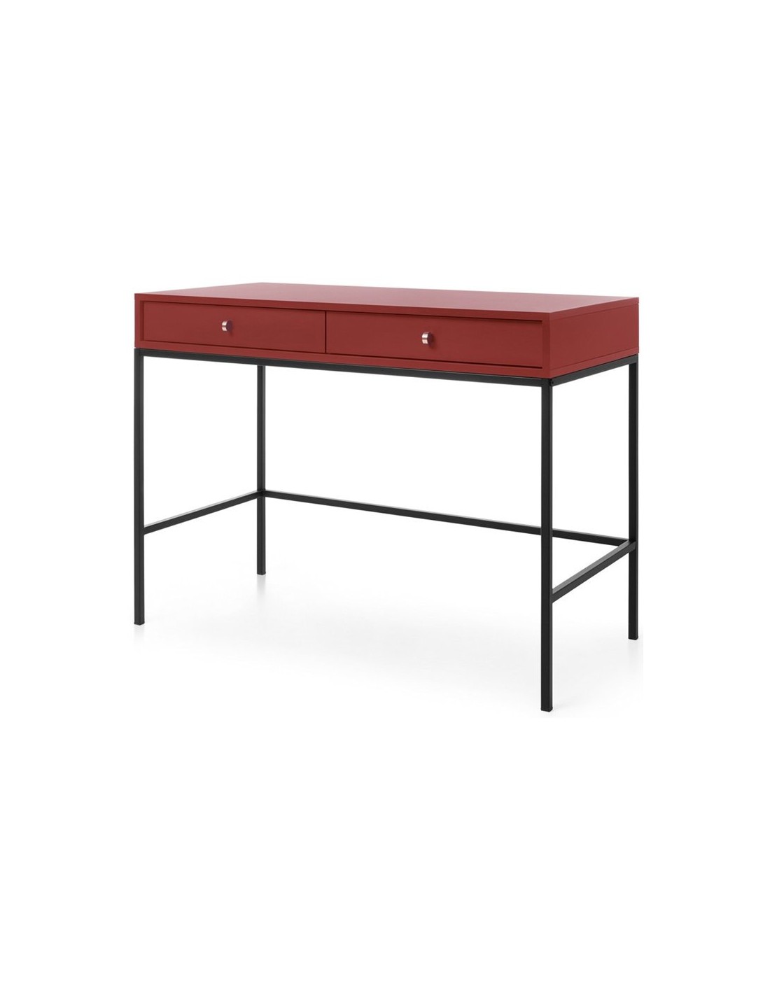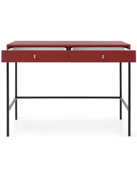 Mono skrivebord udført i et design af sortlakeret metal og bordeaux farvet møbelplade. Skrivebordet måler 77 cm i højden og 103 x 50 cm i bredde og dybde og indeholder 2 skuffer.