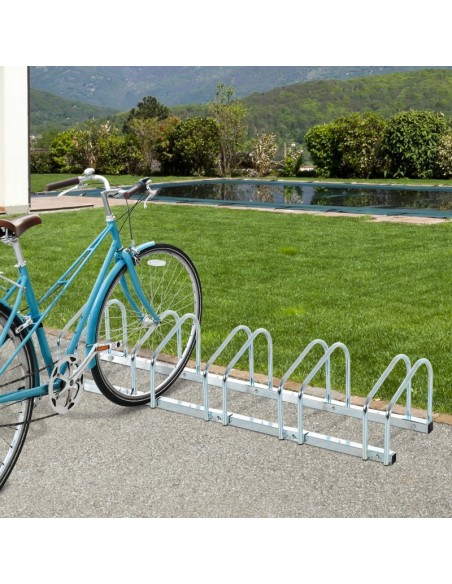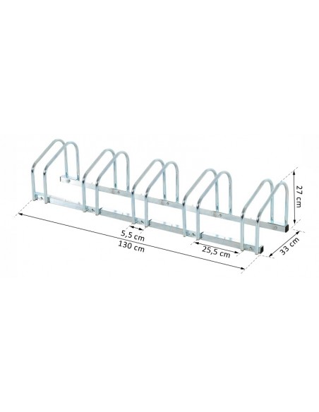 Cykelholder udført i forzinket stål, som kan monteres på enten væg eller jord og holde op til 5 cykler. Holderen måler 130 x 33 x 27 cm.