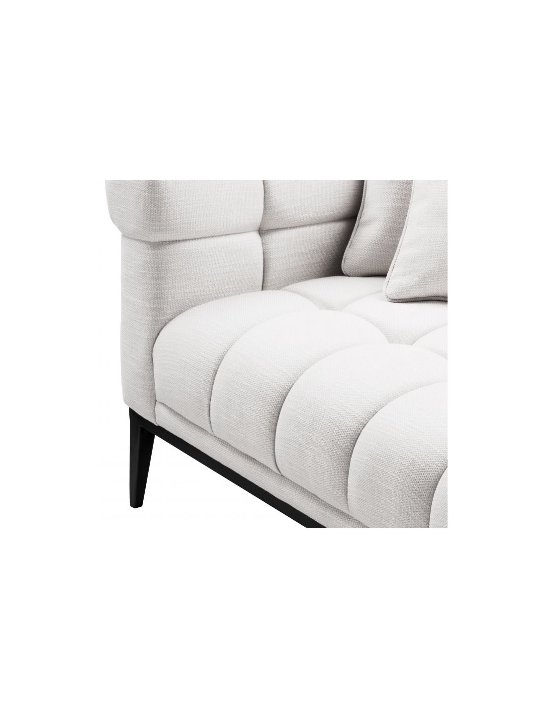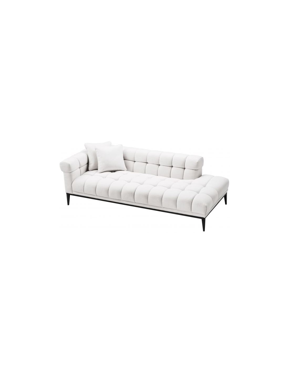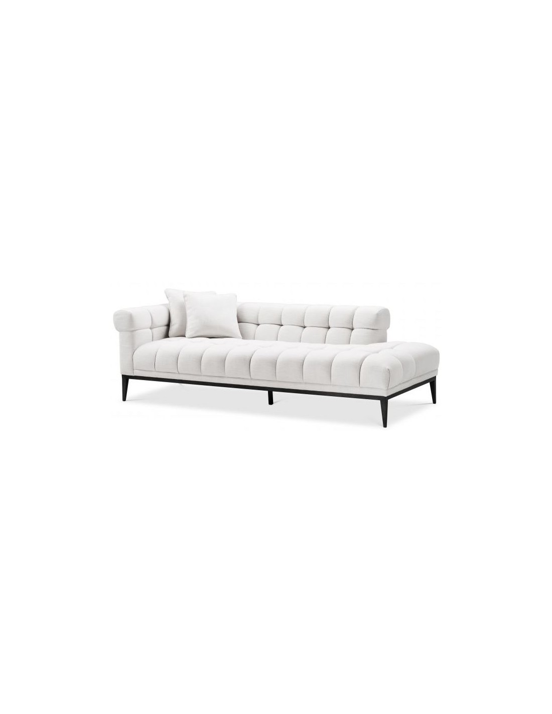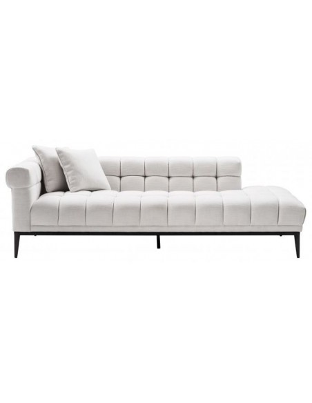 Eichholtz Aurelio venstrevendt daybed, udført i et design af gunmetal lakeret stål og hvid polyester. Daybedden måler 69 cm i højden over ryggen og 223 x 98 cm i bredde og dybde. Sidde/liggehøjden er 44 cm.