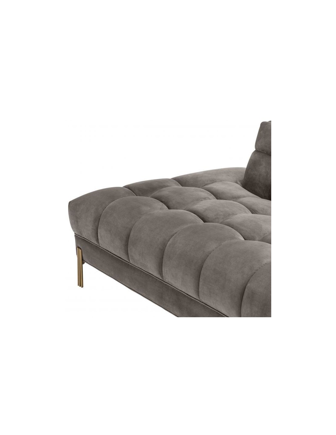Sienna højrevendt daybed i velour 223 x 95 cm - Børstet messing/Grå
