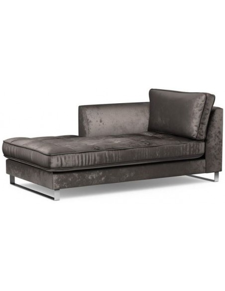 Riviera Maison venstrevendt daybed udført i et design af grå velour. Møblet måler 83 cm i højden og 180 x 94 cm i bredde og dybde. Sidde/Liggehøjde på 42 cm og 148 x 62 cm i liggemål.