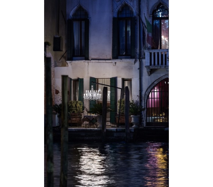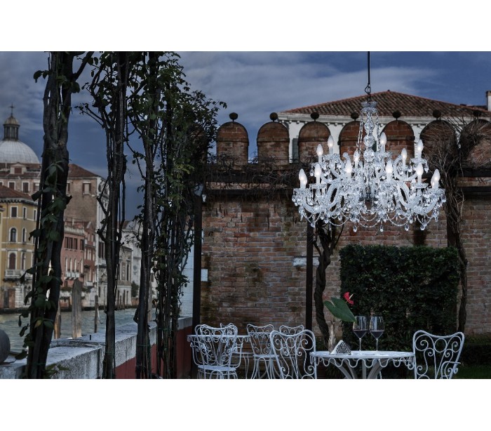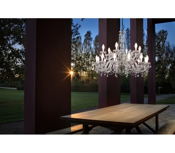 DRYLIGHT S18 Extreme udendørs lysekrone fra Italienske Masiero. Et fantastisk design forenes her med en hyggelig og dekorativ måde at oplyse udendørsområder. DRYLIGHT lysekroner er fremstillet i Methacrylate, som tåler både regn og slud. Lysekronen har indbyggede LED lyskilder på 54W.