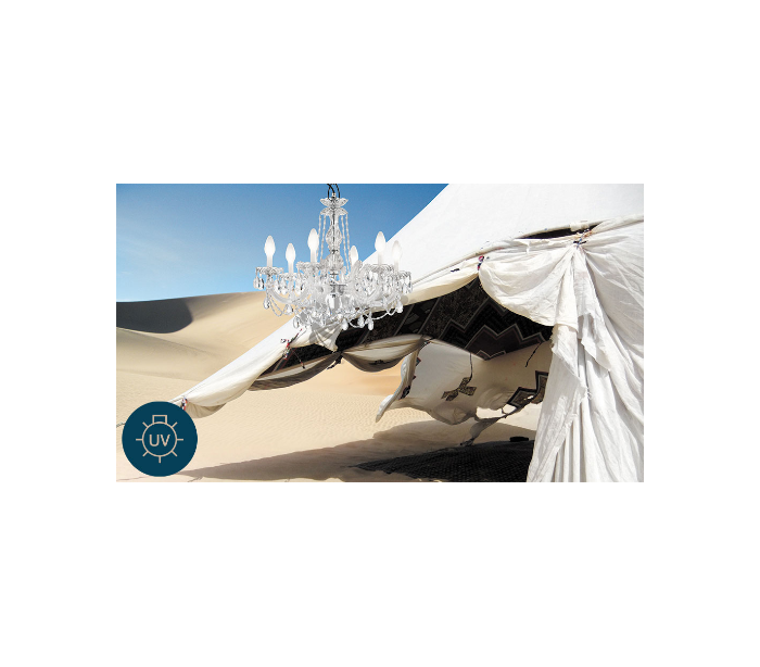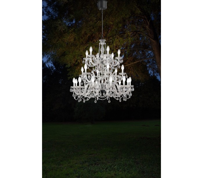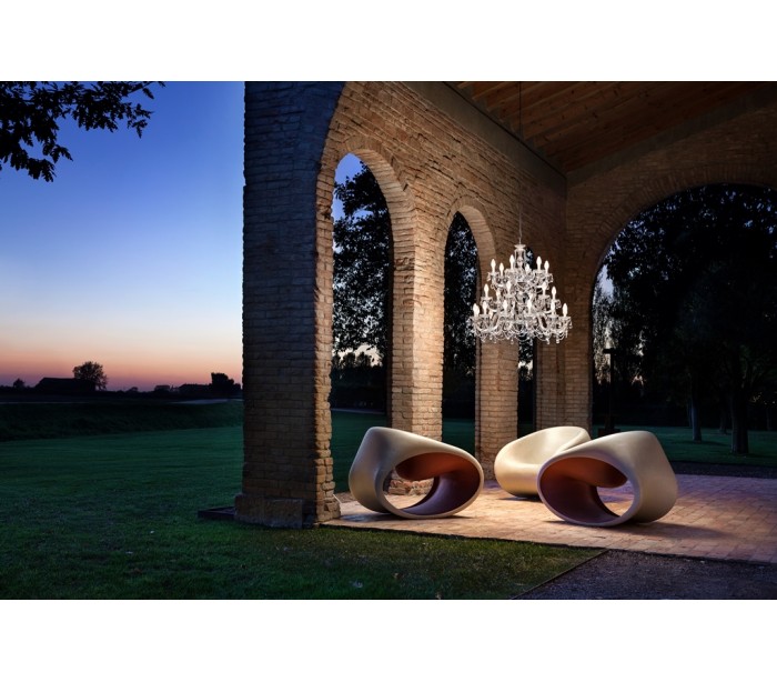DRYLIGHT S24 Extreme udendørs lysekrone fra Italienske Masiero. Et fantastisk design forenes her med en hyggelig og dekorativ måde at oplyse udendørsområder. DRYLIGHT lysekroner er fremstillet i Methacrylate, som tåler både regn og slud. Lysekronen har indbyggede LED lyskilder på 72W.