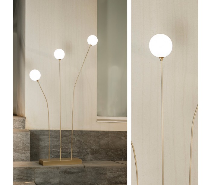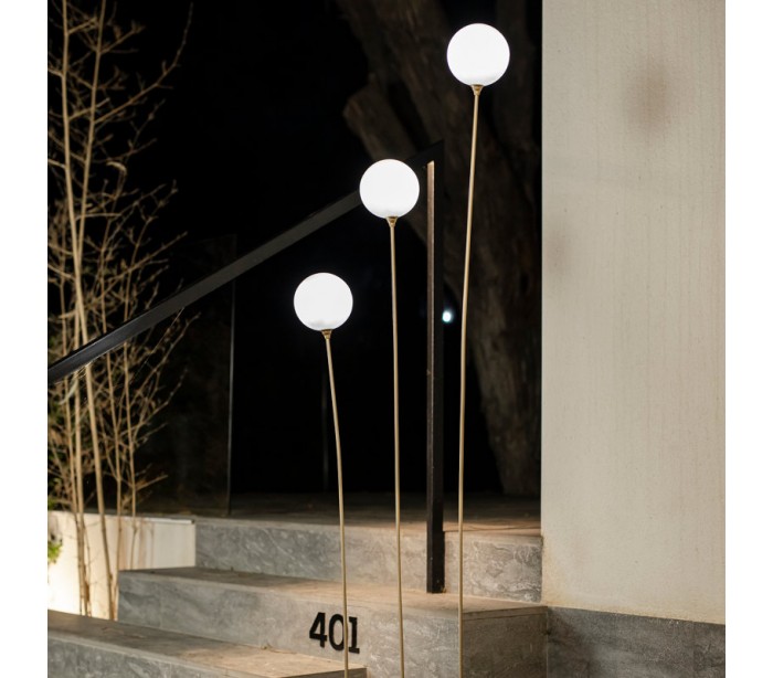 Dekorativ udendørs lamper fremstillet i messingfarvet metal og hvid polyethylene. Lamperne er med ledning på 4 meter, som går direkte i stikkontakten. Lamperne måler op til 163 cm i højden og 13 cm i skærmdiameter.