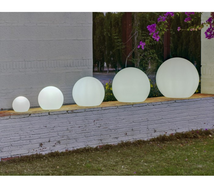 Dekorativ udendørs lampe fremstillet i hvid polyethylene. Lampen kommer 2 meter ledning, der går direkte i almindelig stikkontakt. Lampen måler 55 cm i højden og 60 cm i skærmdiameter og anvender 1 x E27 lyskilde (ekskl.).