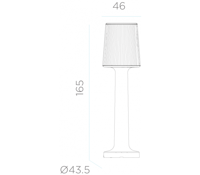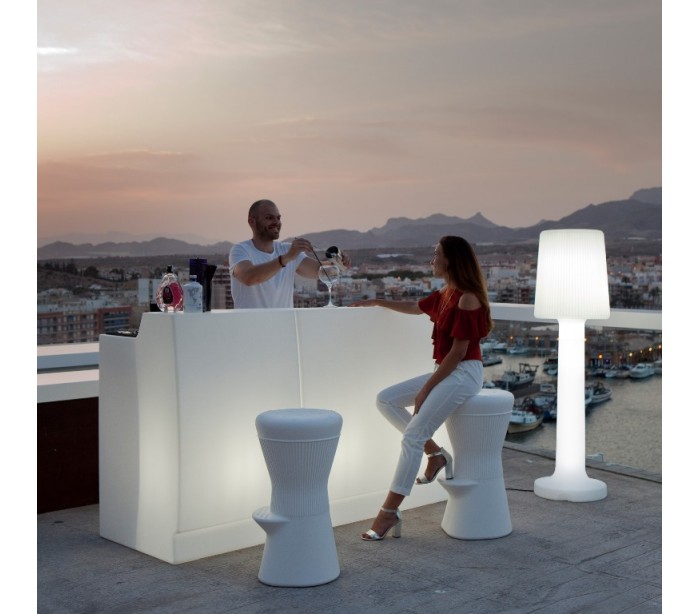 Dekorativ udendørs gulvlampe fremstillet i hvid polyethylene. Lampen kommer 4 meter ledning, der går direkte i almindelig stikkontakt. Lampen måler 165 cm i højden og 46 cm i skærmdiameter.