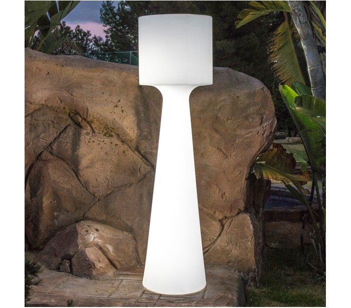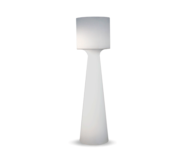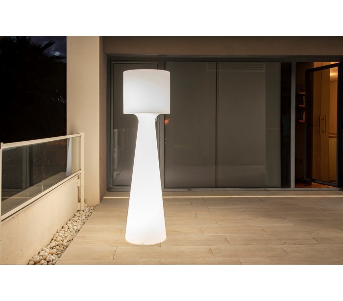 Dekorativ udendørs gulvlampe fremstillet i hvid polyethylene. Lampen kommer 4 meter ledning, der går direkte i almindelig stikkontakt. Lampen måler 170 cm i højden og 46 cm i skærmdiameter.