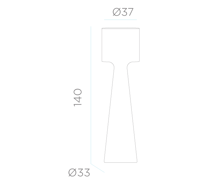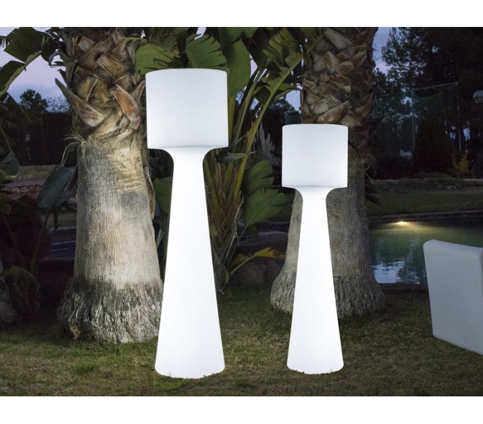 Dekorativ trådløs udendørs gulvlampe fremstillet i hvid polyethylene. Lampen oplades via AC/DC adapter, der går direkte i stikkontakten og er med 1,5 meter ledning. Lampen måler 140 cm i højden og 37 cm i skærmdiameter.