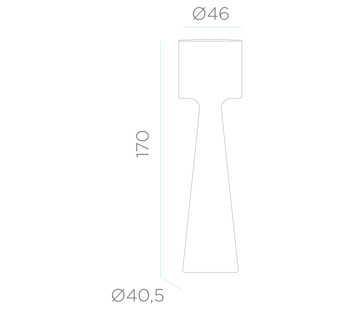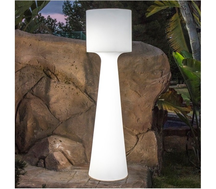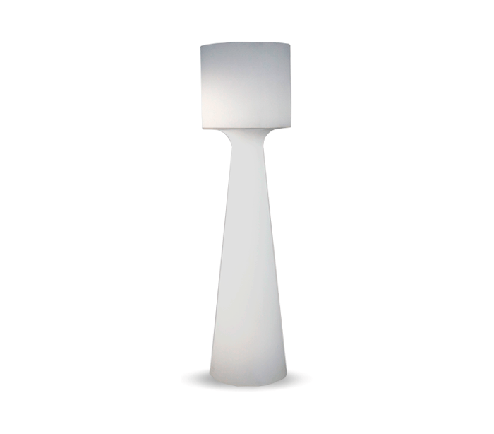Dekorativ trådløs udendørs gulvlampe fremstillet i hvid polyethylene. Lampen oplades via AC/DC adapter, der går direkte i stikkontakten og er med 1,5 meter ledning. Lampen måler 170 cm i højden og 46 cm i skærmdiameter.