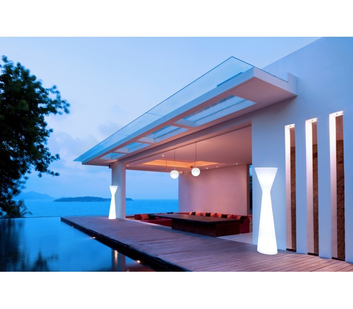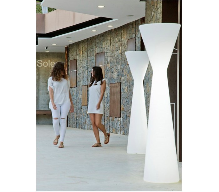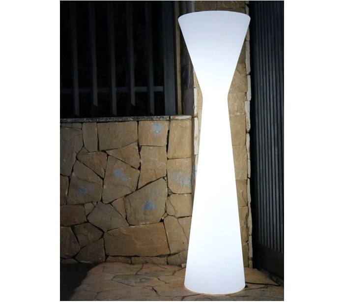 Dekorativ udendørs gulvlampe fremstillet i hvid polyethylene. Lampen kommer 4 meter ledning, der går direkte i almindelig stikkontakt. Lampen måler 170 cm i højden og 45,5 cm i skærmdiameter.