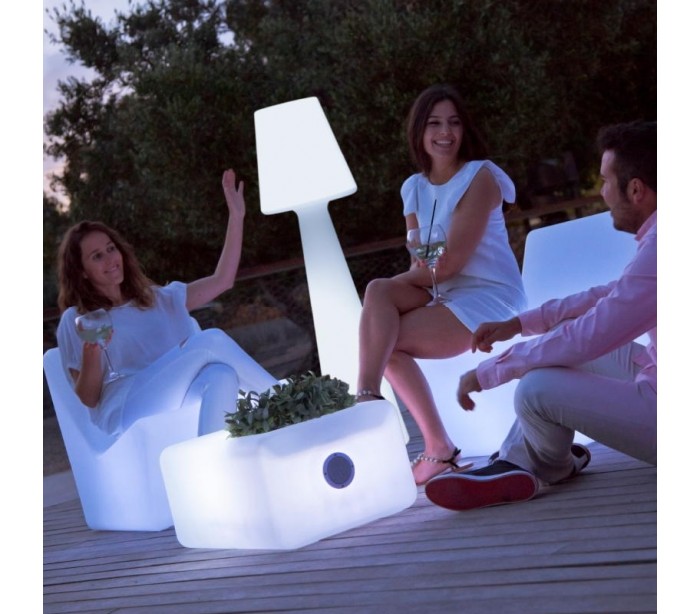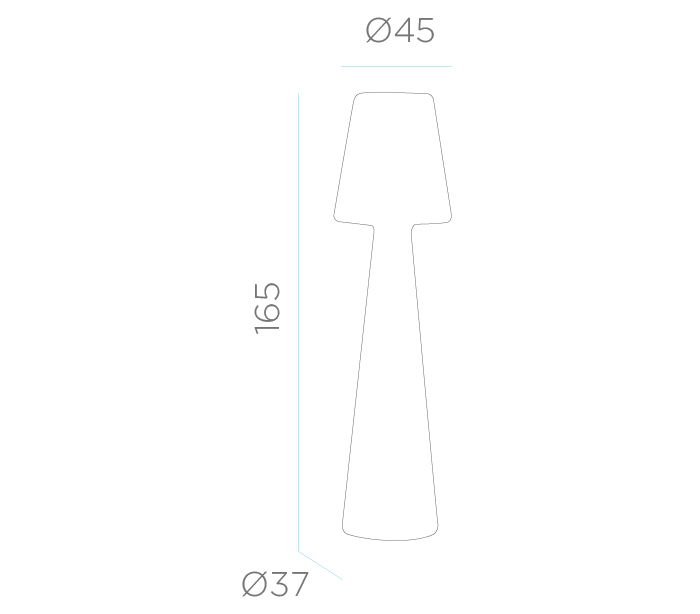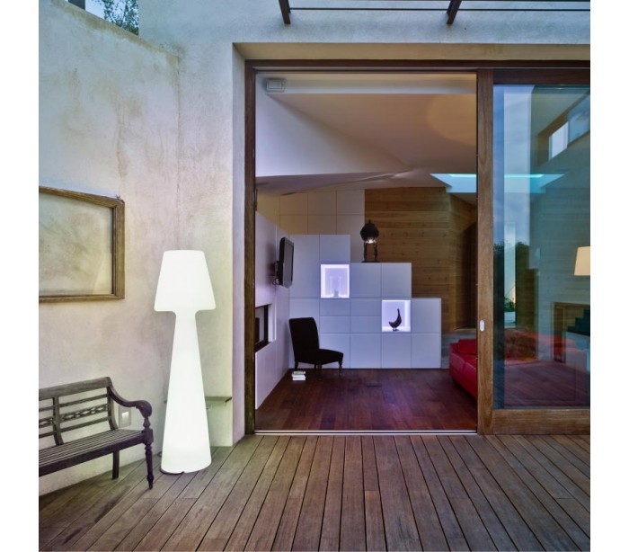 Dekorativ udendørs gulvlampe fremstillet i hvid polyethylene. Lampen kommer 4 meter ledning, der går direkte i almindelig stikkontakt. Lampen måler 165 cm i højden og 45 cm i skærmdiameter.