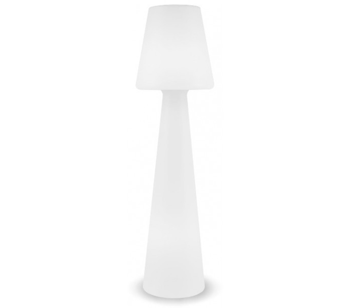 Dekorativ trådløs udendørs gulvlampe fremstillet i hvid polyethylene. Lampen oplades via AC/DC adapter, der går direkte i stikkontakten og er med 1,5 meter ledning. Lampen måler 165 cm i højden og 45 cm i skærmdiameter.