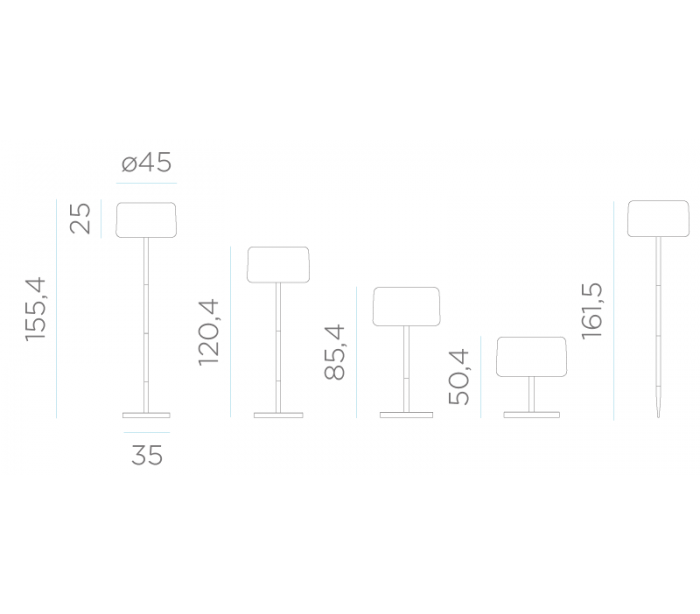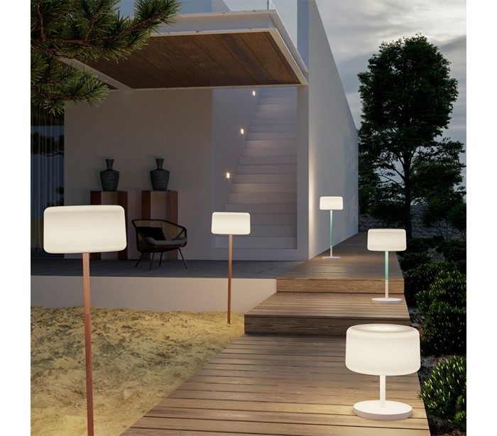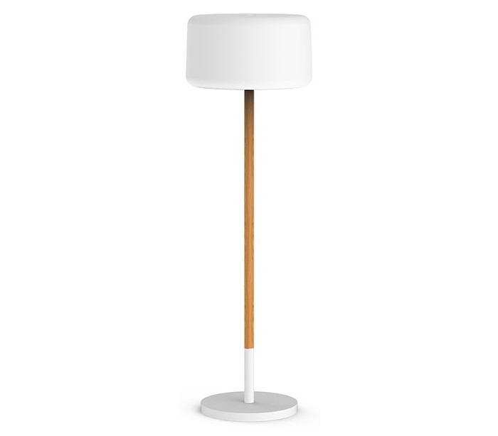 Dekorativ trådløs udendørs 5-i-1 lampe fremstillet i hvid polyethylene og naturfarvet træ. Lampen oplades via AC/DC adapter, der går direkte i stikkontakten og er med 1,5 meter ledning. Lampen måler 50 - 155 cm i højden og 45 cm i skærmdiameter.