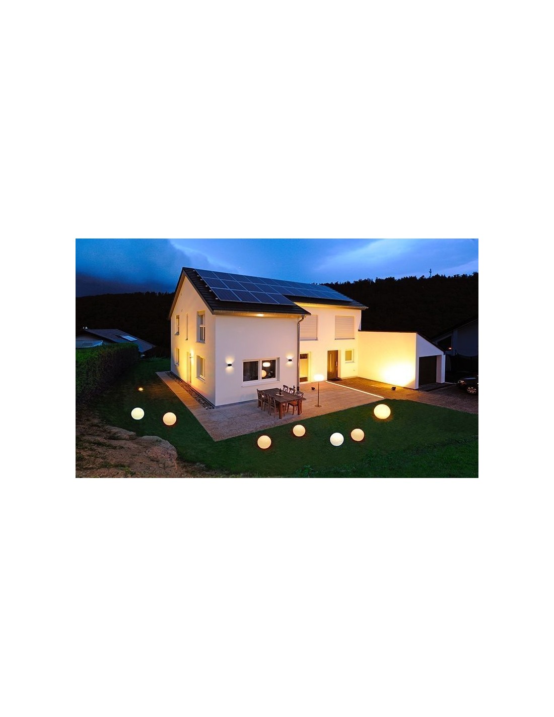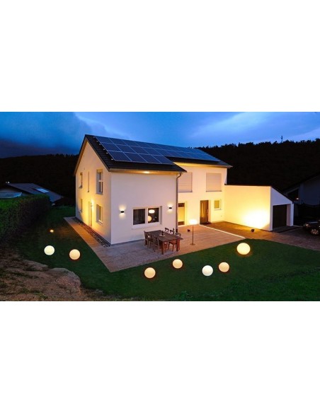 Lysende kugle til dekorativ belysning i have eller på terrassen. Lampen måler 38 x 35 cm i diameter og højde. Lampen anvender 1 x E27 lyskilde.