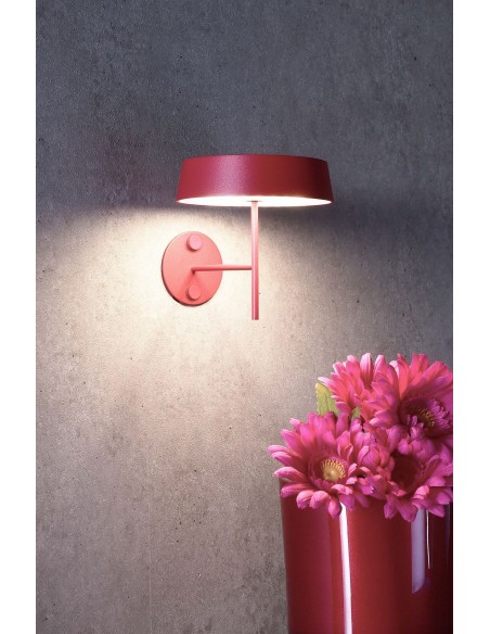 Indendørs eller udendørs trådløs opladelig væglampe udført i et moderne design af vinrødlakeret aluminium. Lampen måler 11,9 cm i højden og oplades via usb-c (inkl.). Lampen anvender 1 x 2,2W lyskilde, der giver et hyggeligt lys når mørket falder på. Lampen er dæmpbar via knap. Lampen holder strøm i op til 10 timer, afhængig af opladning og temperatur. Lampearmen har magnet til at holde skærmen fast.