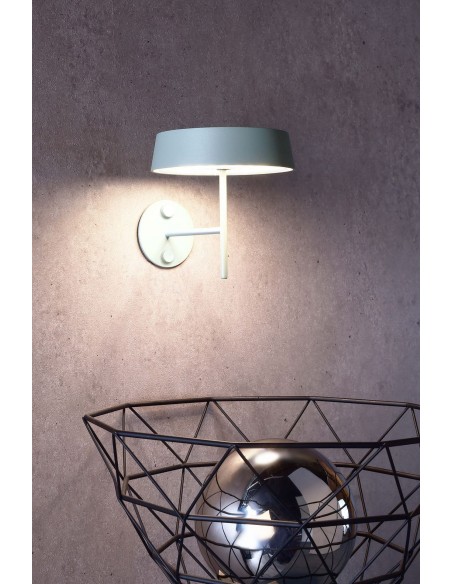 Indendørs eller udendørs trådløs opladelig væglampe udført i et moderne design af grønlakeret aluminium. Lampen måler 11,9 cm i højden og oplades via usb-c (inkl.). Lampen anvender 1 x 2,2W lyskilde, der giver et hyggeligt lys når mørket falder på. Lampen er dæmpbar via knap. Lampen holder strøm i op til 10 timer, afhængig af opladning og temperatur. Lampearmen har magnet til at holde skærmen fast.