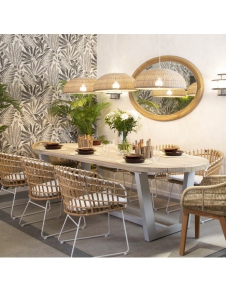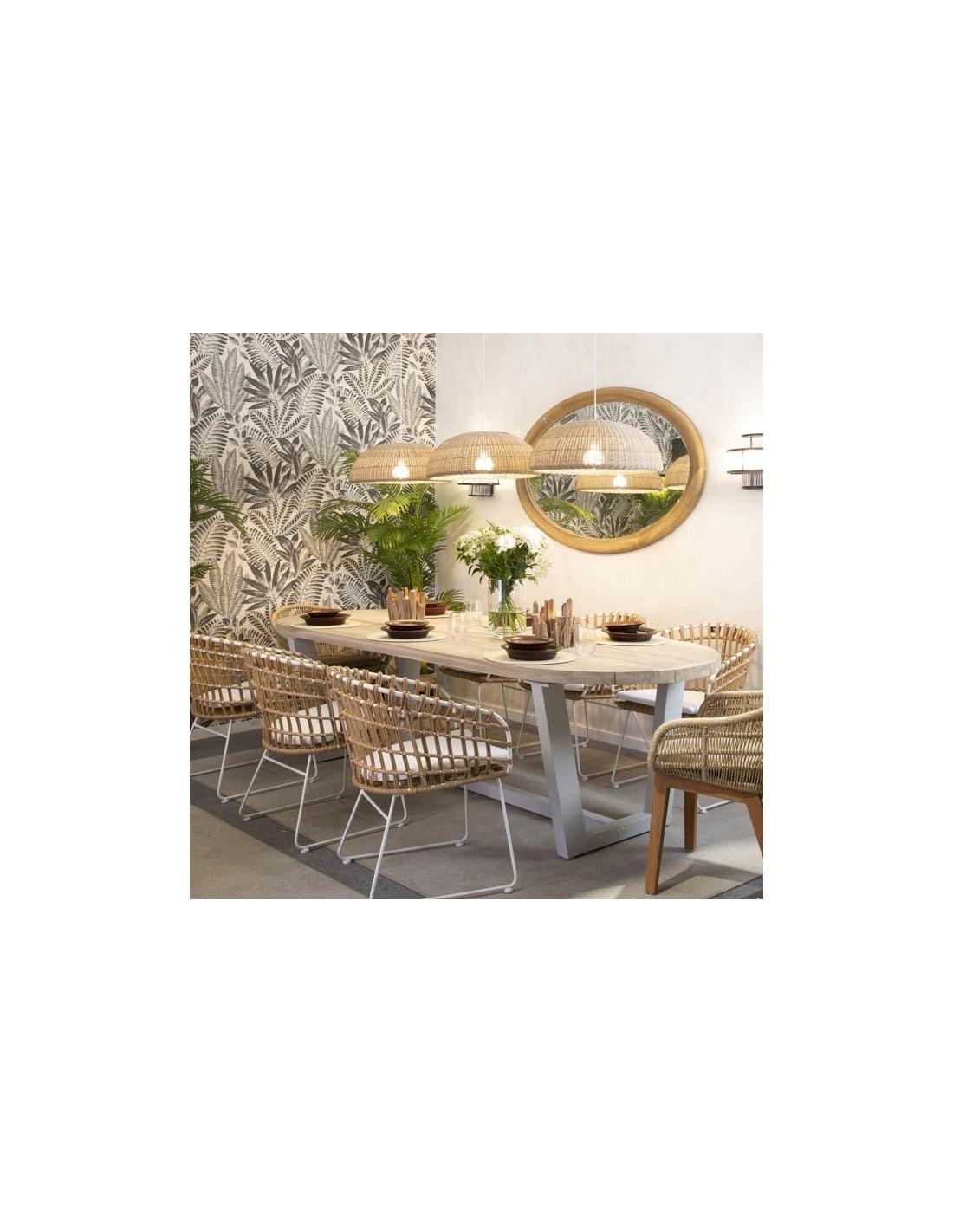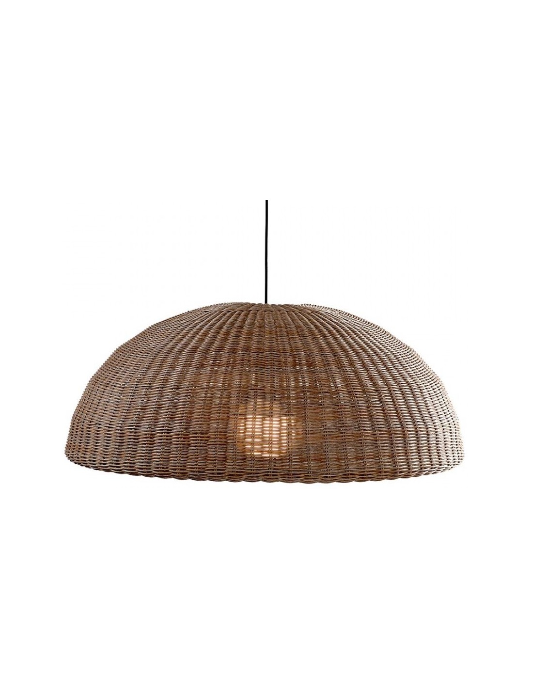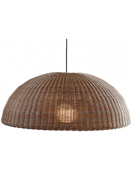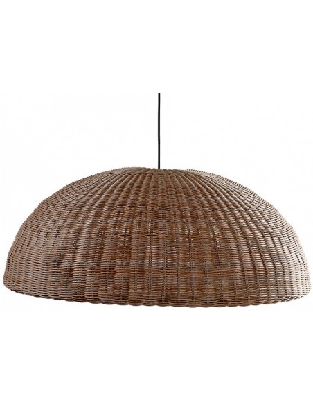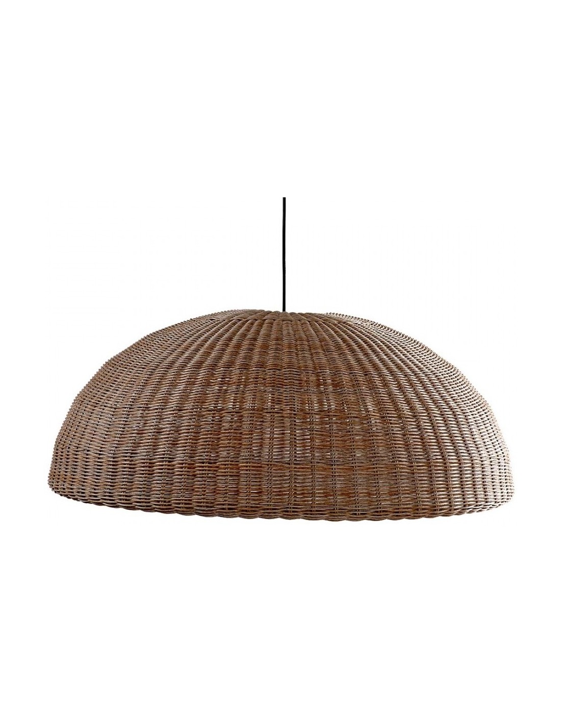 Indendørs eller udendørs XXL lampeskærm, udført i et middelhavsdesign af naturfarvet rattanflet. Skærmen måler 23 cm i højden og 62 cm i diameter.