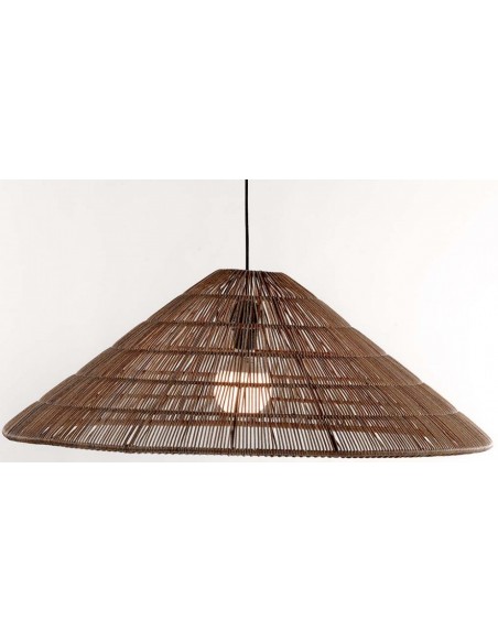 Indendørs eller udendørs XXL lampeskærm, udført i et middelhavsdesign af naturfarvet rattanflet. Skærmen måler 28 cm i højden og 81 cm i diameter.