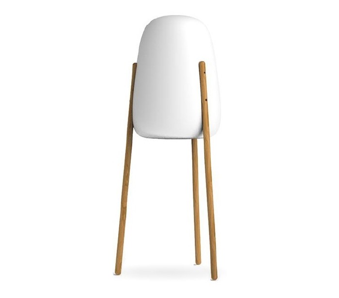 Dekorativ udendørs gulvlampe fremstillet i hvid polyethylene og naturfarvet træ. Lampen kommer 4 meter ledning, der går direkte i almindelig stikkontakt. Lampen måler 144,3 cm i højden og 50,3 cm i skærmdiameter.