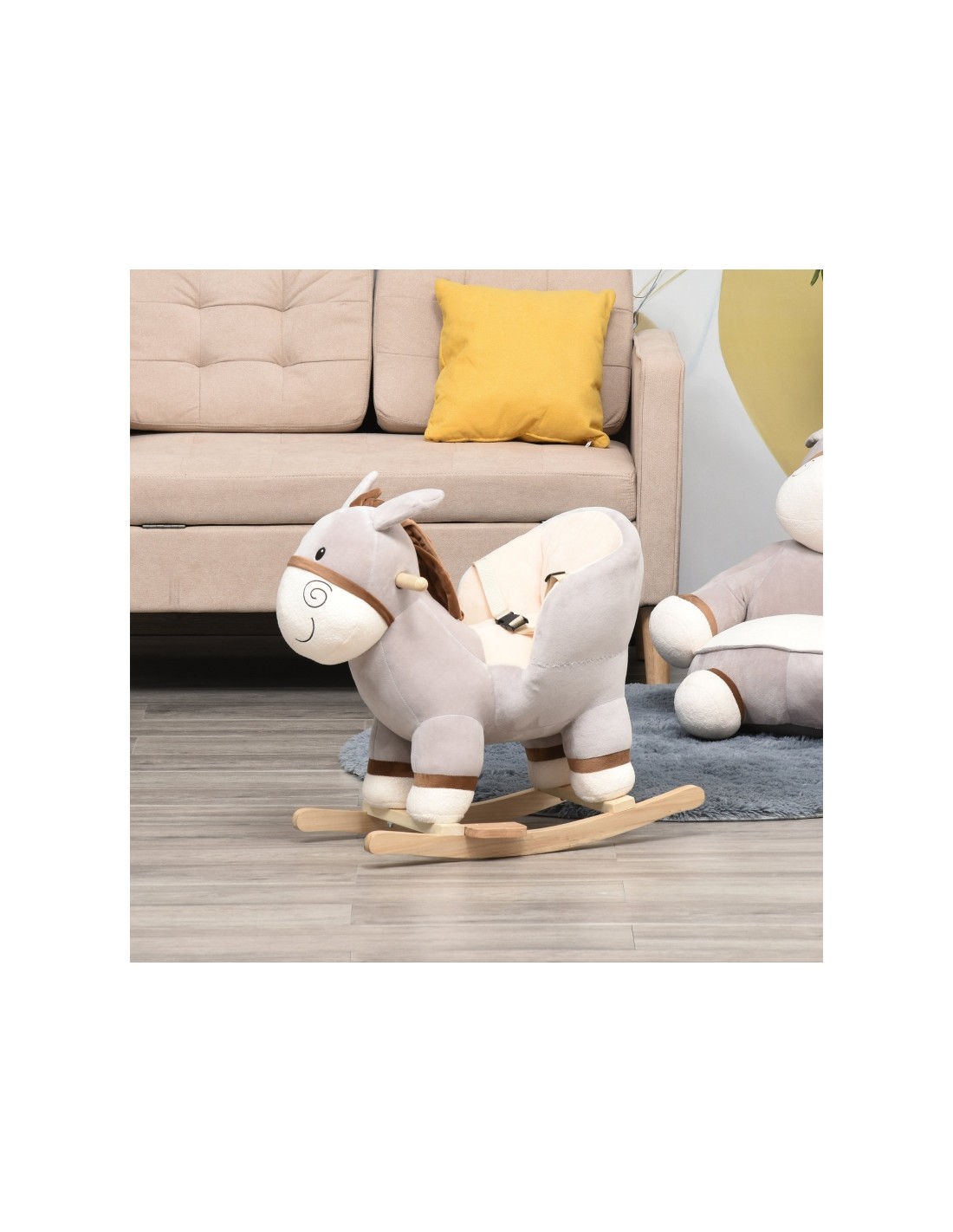 Gyngehest til børn, udført i et design af træ og tekstil. Gyngehesten måler 58 cm i højden og med siddehøjde på 34 cm. Hesten passer til aldersgruppen 18 - 36 måneder.