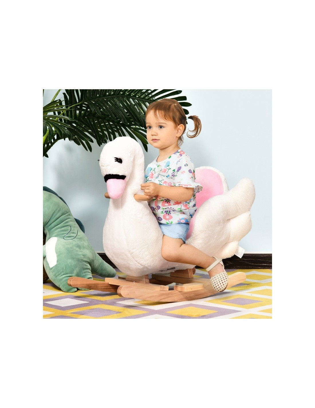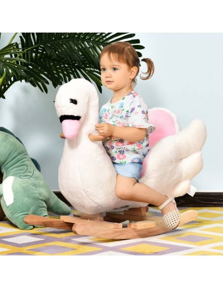 Gyngehest til børn H55 cm - Natur/Hvid
