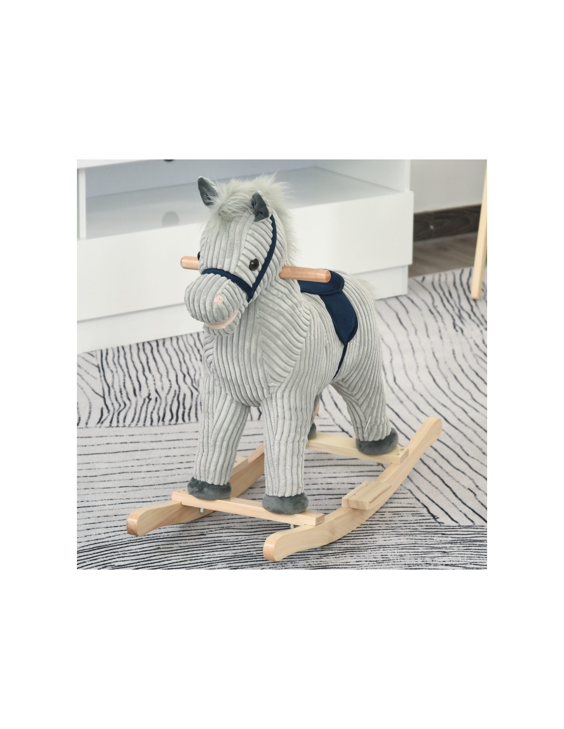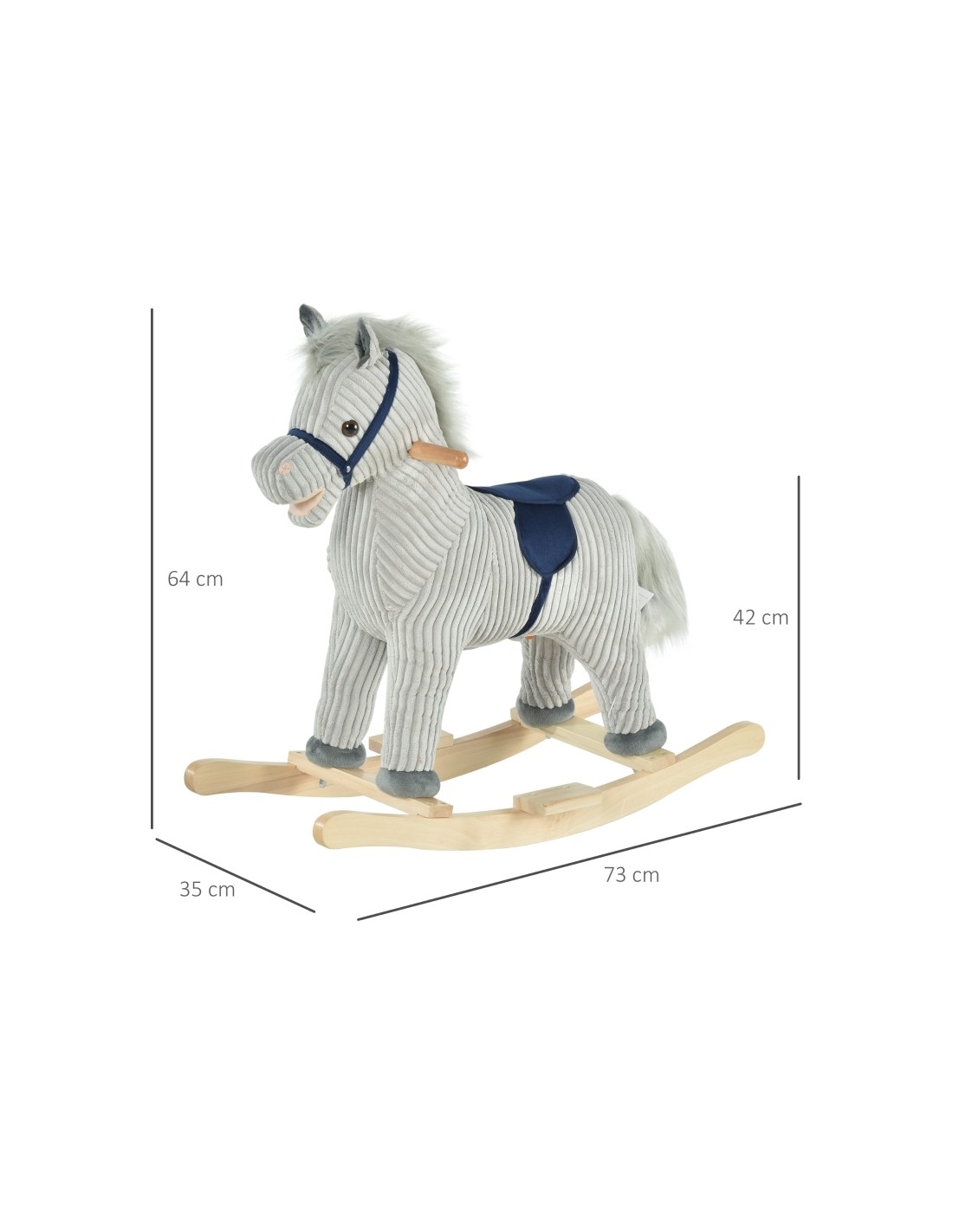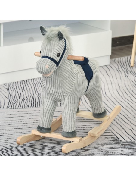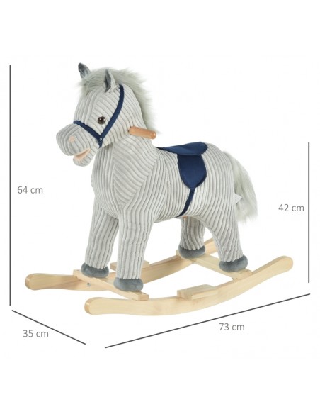 Gyngehest til børn H64 cm - Natur/Grå