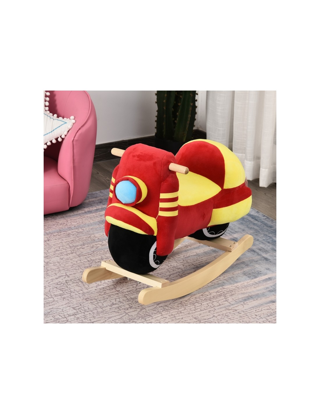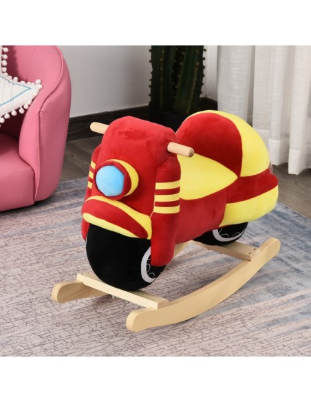 Gyngehest til børn H48 cm - Natur/Rød