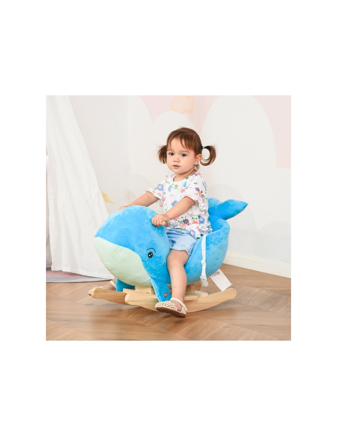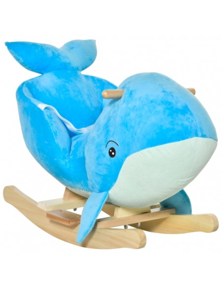 Gyngehest til børn H50 cm - Natur/Blå