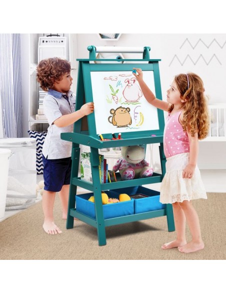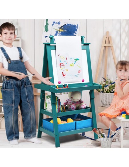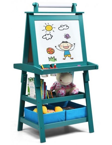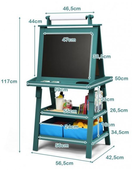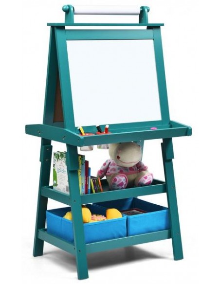 Staffeli med tavle og whiteboard i mdf H117 cm - Blågrøn