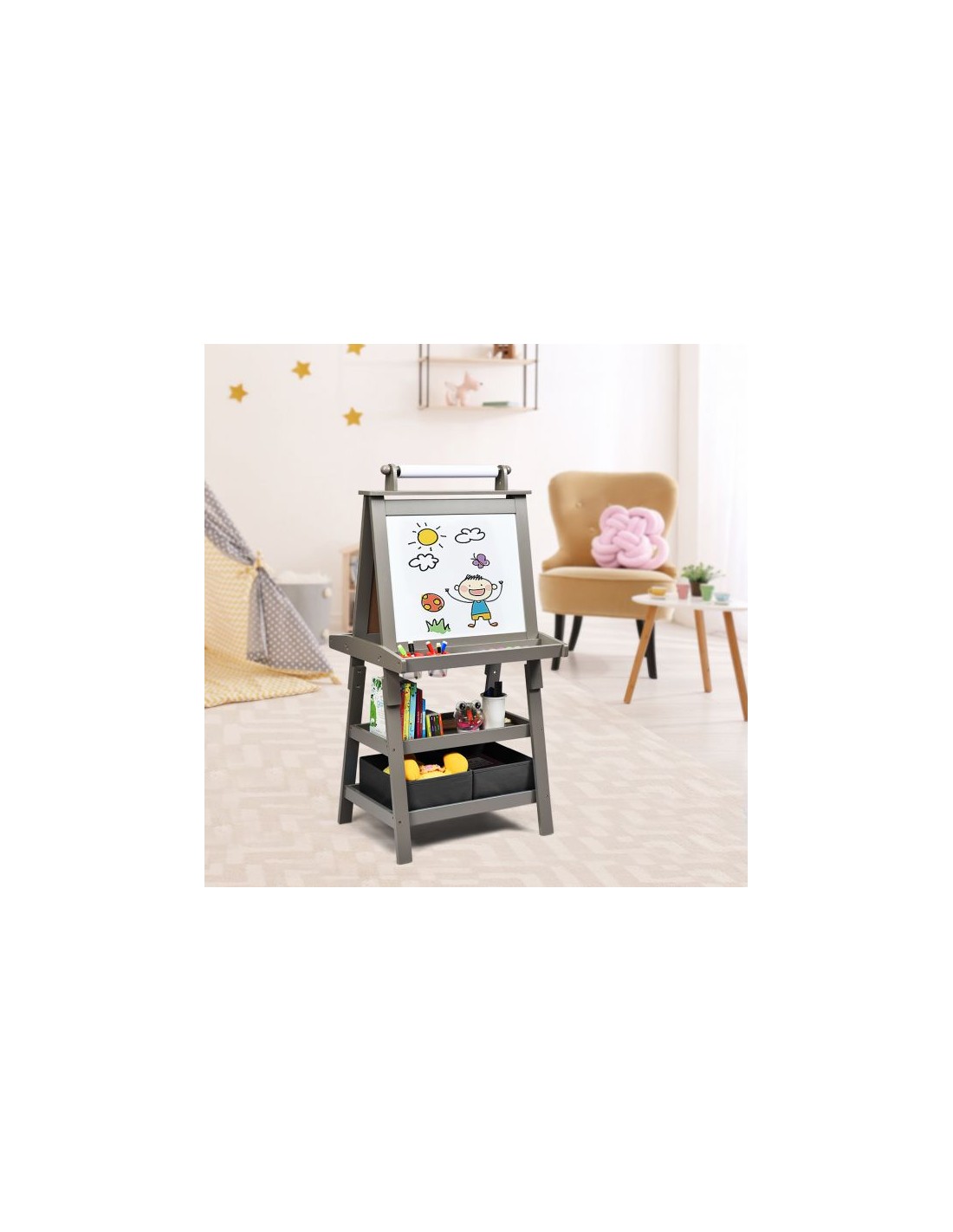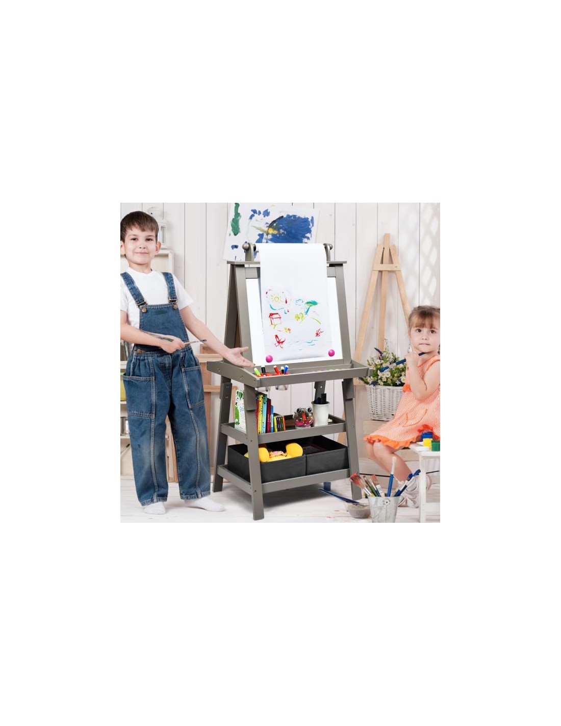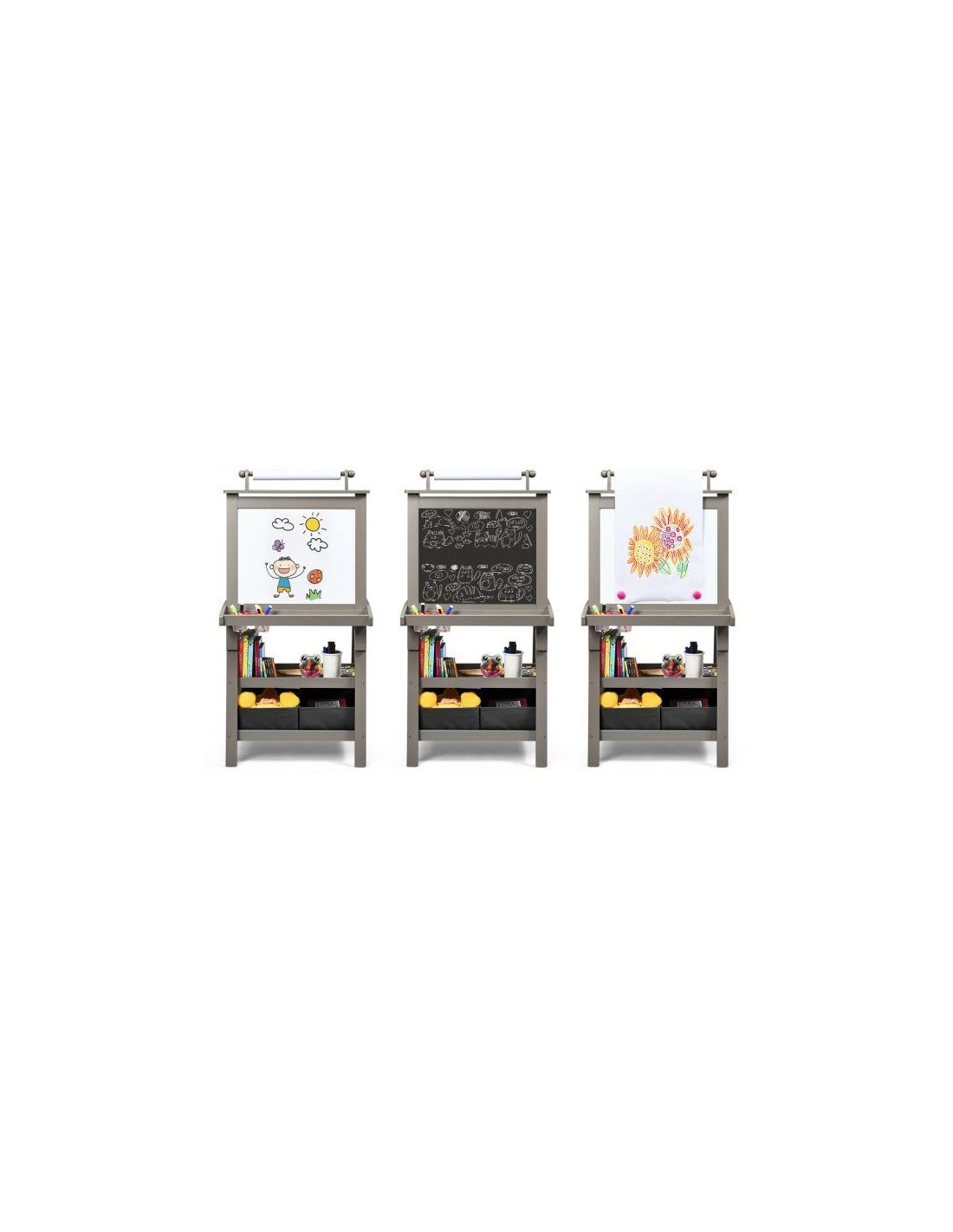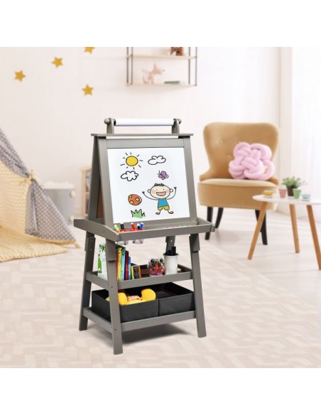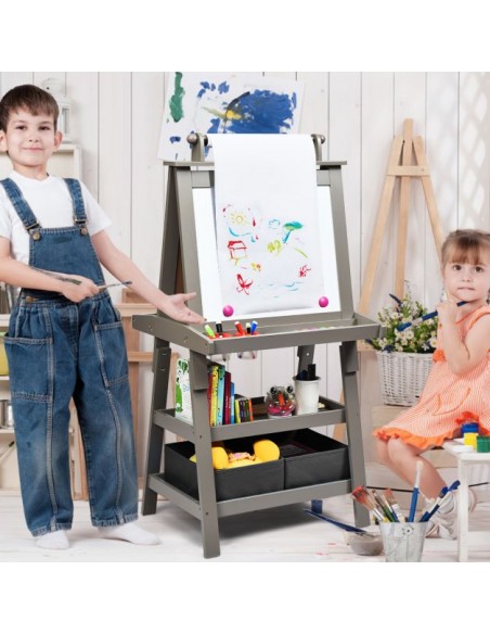 Staffeli med tavle og whiteboard i mdf H117 cm - Grå