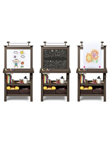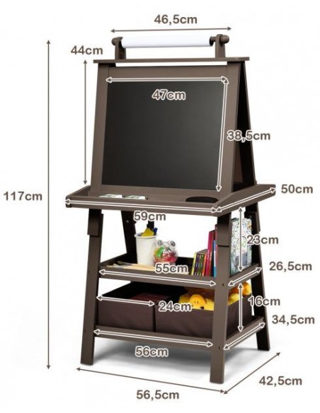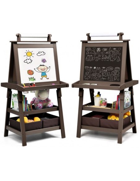 Staffeli med tavle og whiteboard i mdf H117 cm - Brun